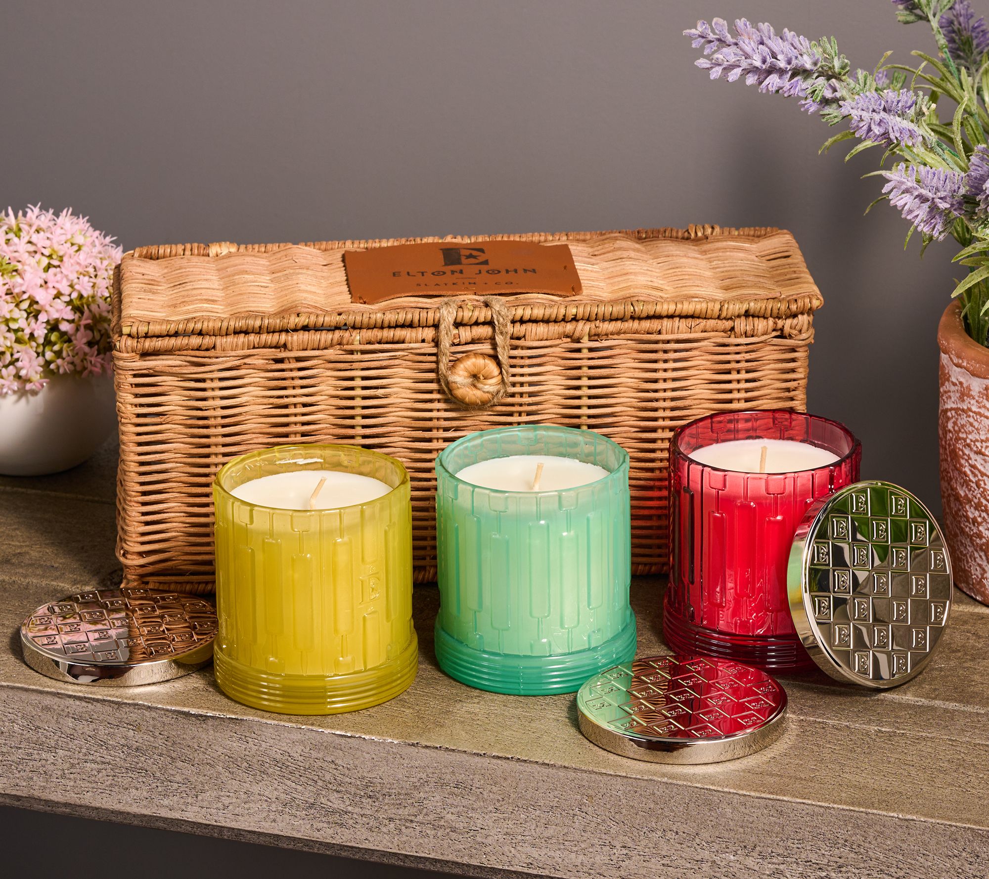 "As Is" Elton John by Slatkin + Co. S/3 8oz Woodside English Hamper