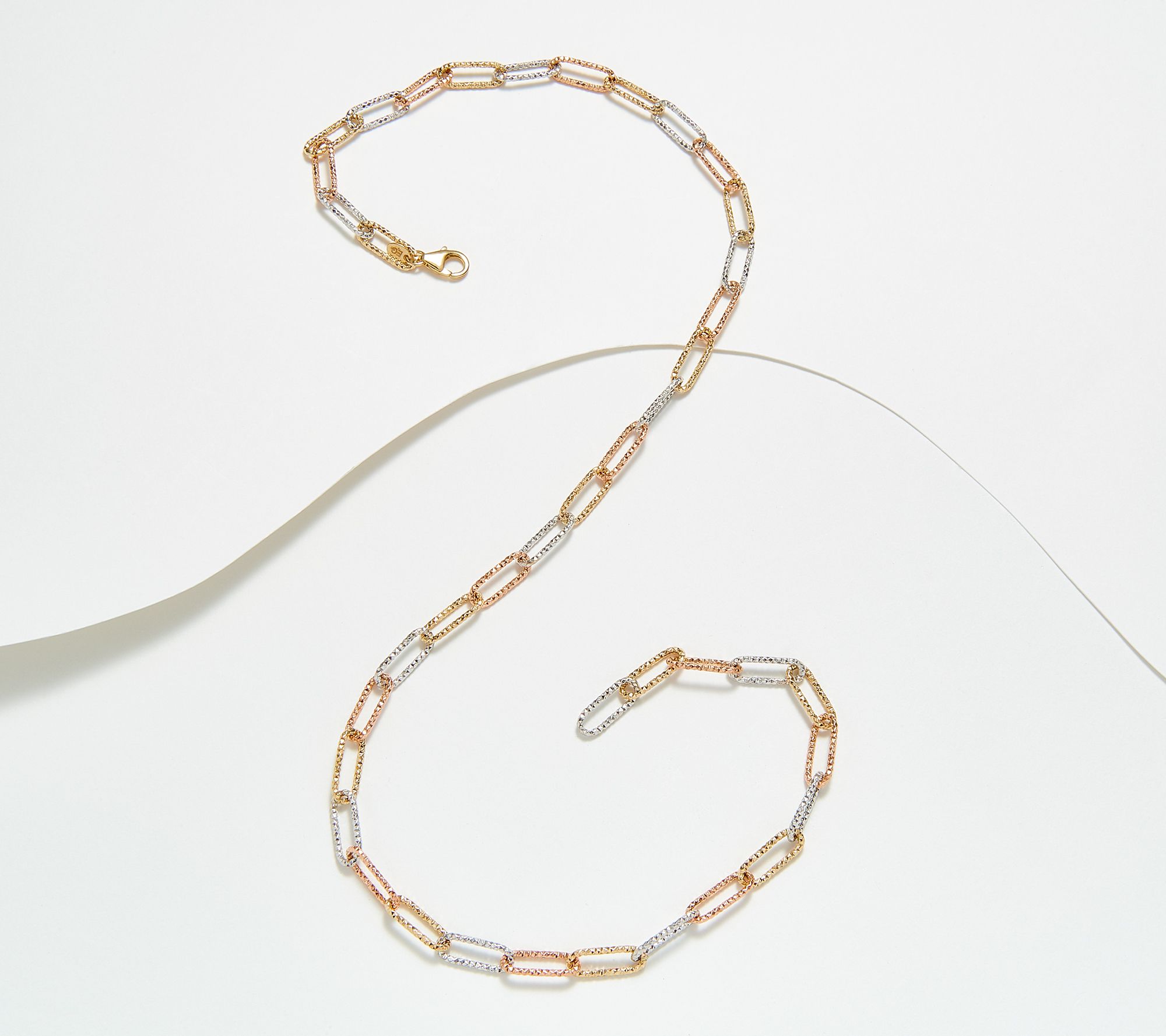 • Tri-colored design; diamond-cut paper clip links