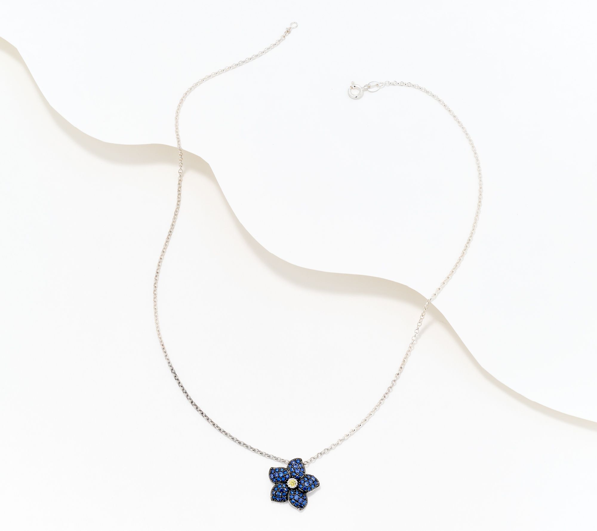 • Forget-me-not motif with simulated sapphires