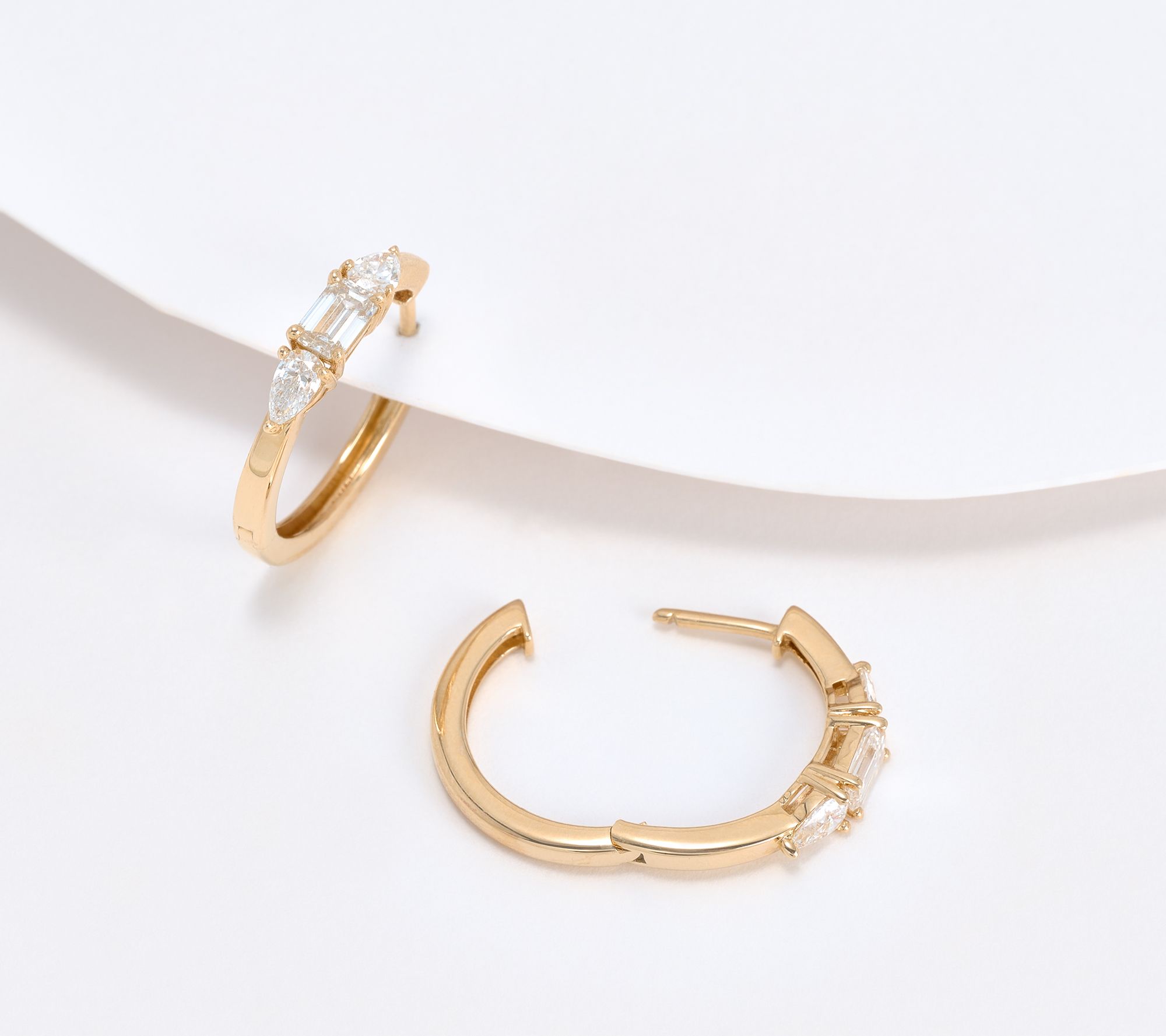 A combination of pear-cut and emerald-cut lab-grown diamonds give these hoops a mesmerizing elegance. From Fire Light Lab Grown Diamond Jewelry.