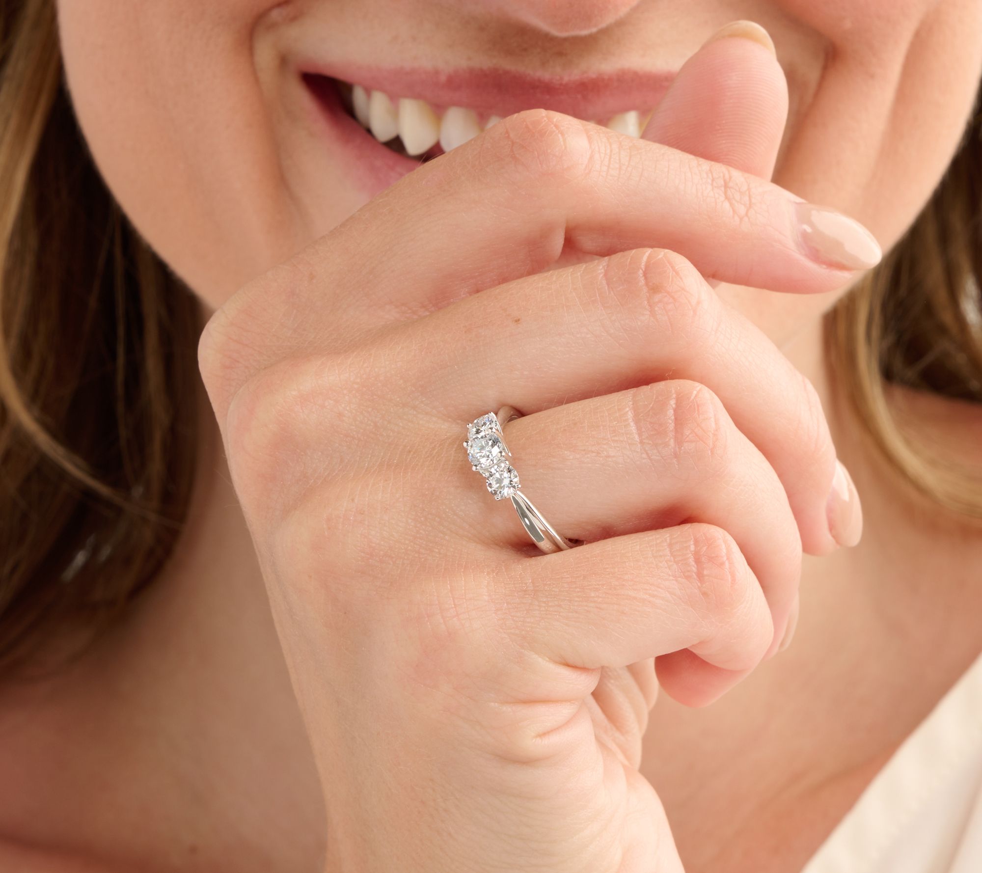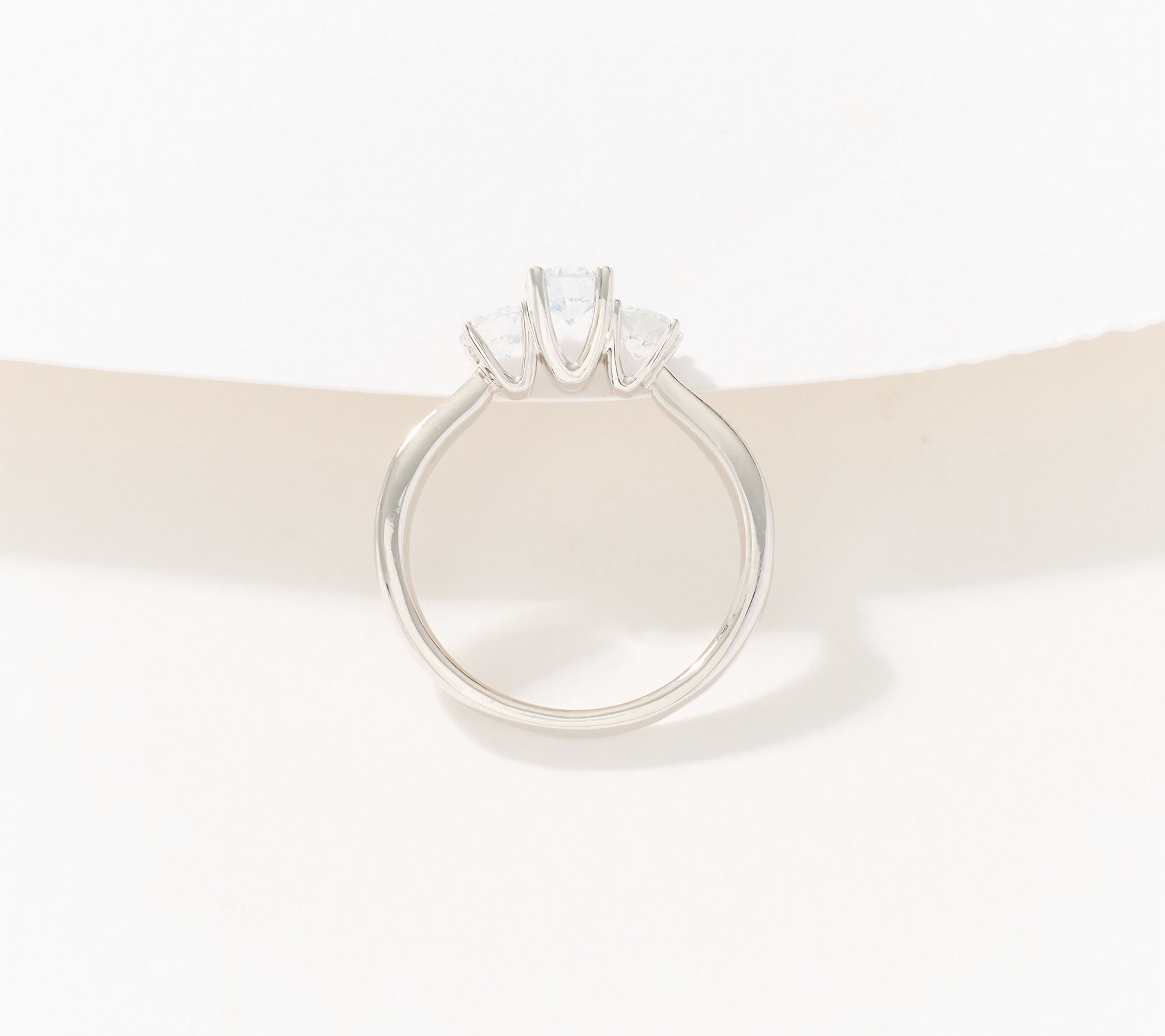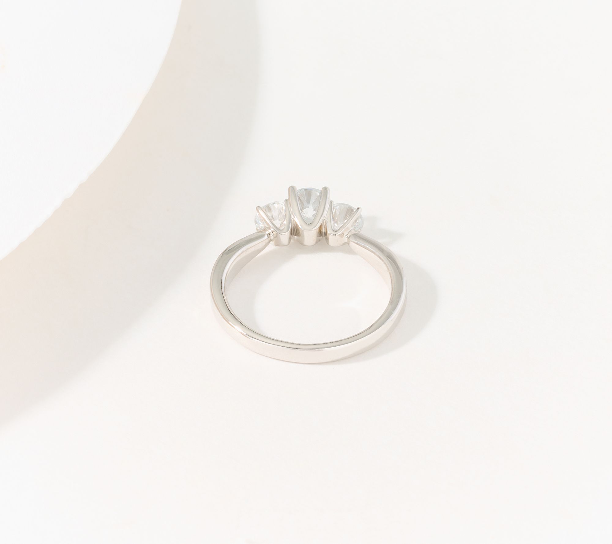 • Prong-set lab-grown diamonds; three stone design