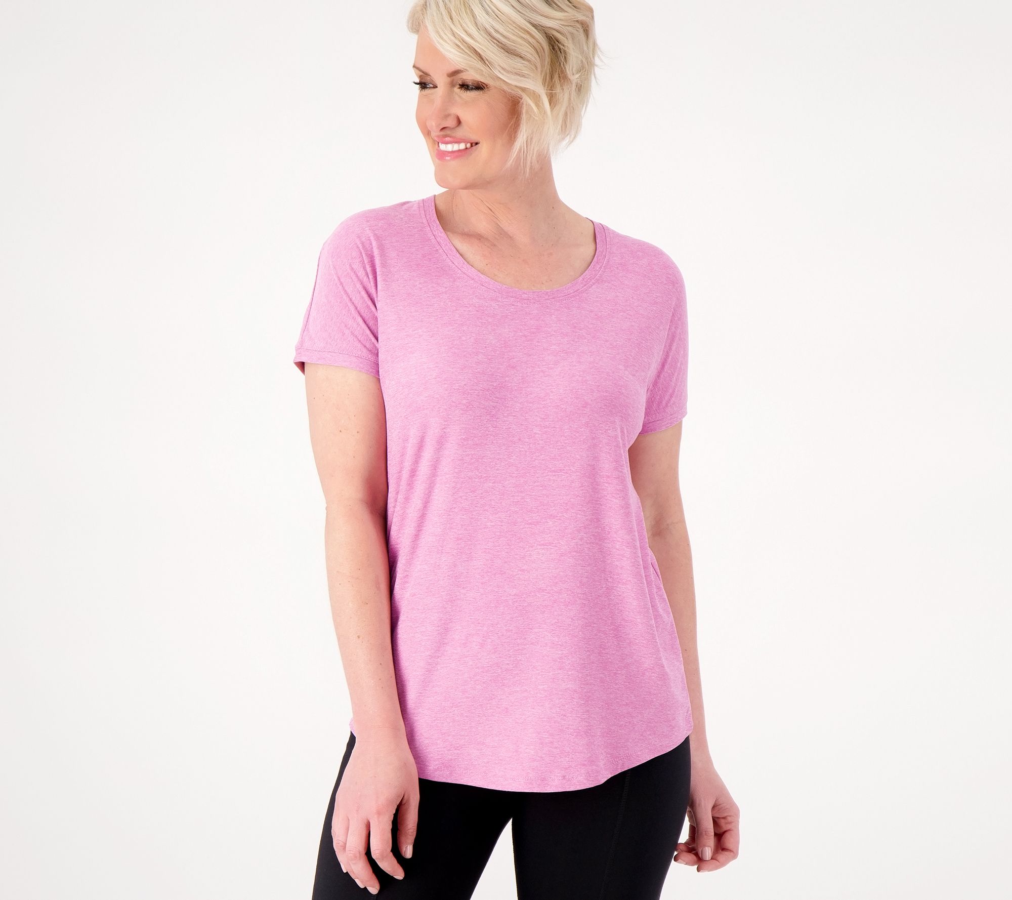 "As Is" Fit 4 All by Carrie Wightman Keyhole Back Curved Hem Tee