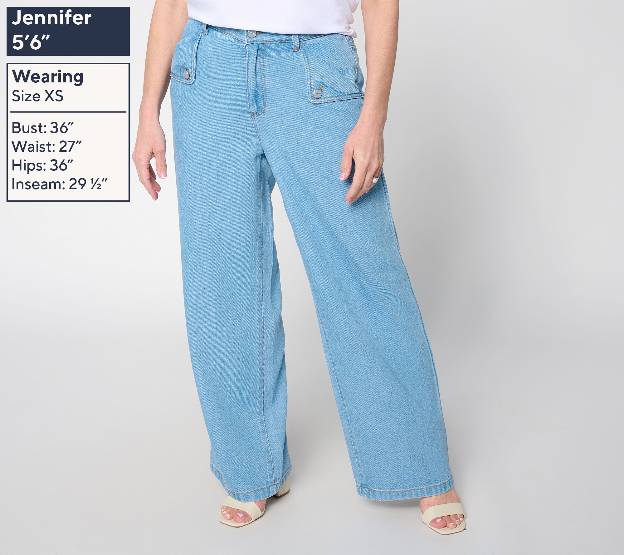 • Leg Shape: wide leg; widens fashionably from thigh to leg opening