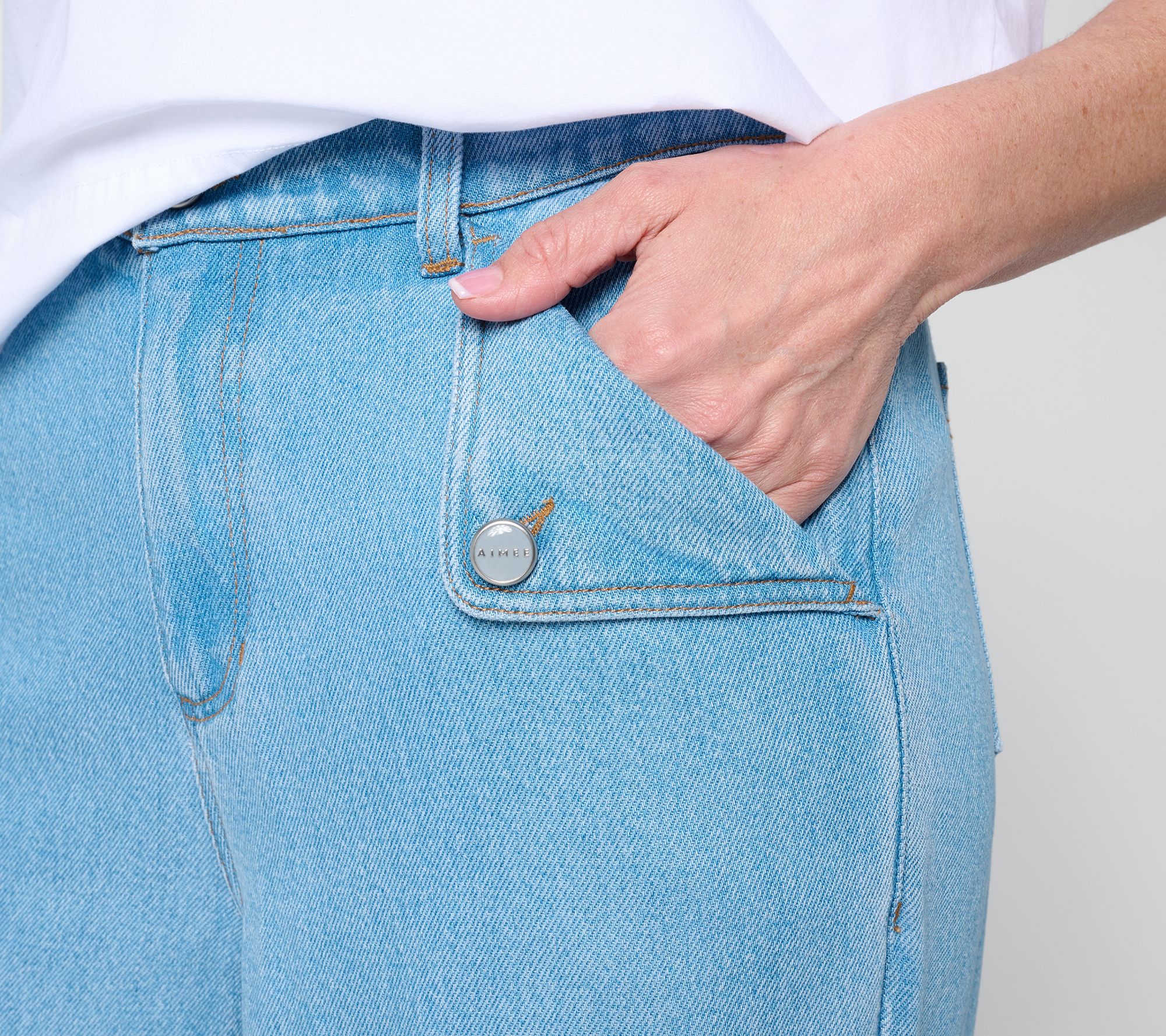 Your go-to jeans for days when you want style mixed with comfort. The soft fabric and back elastic waistband make them easy to wear whether you're headed to brunch or stepping out for errands. Subtle stitch detail and angled pockets add a fresh touch to your everyday look. From Flowee by Aimee Kestenberg.