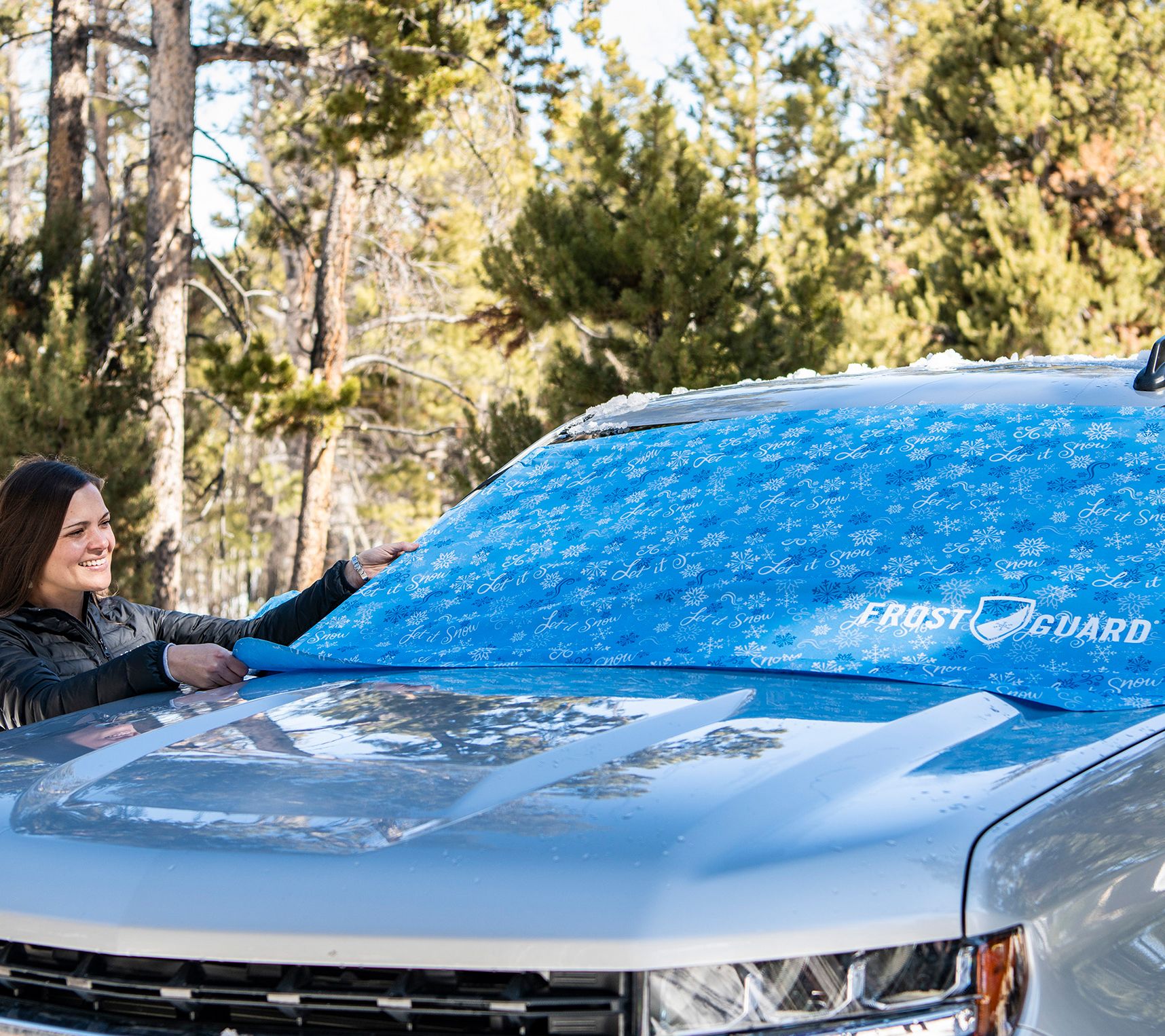 Tis the season for snow, ice, frost, and FrostGuard®! Designed to cover your windshield from the wiper blades all the way up to the top, the ingenious FrostGuard cover lets you skip the scraping so you can get on the road in no time. Security panels ensure a snug fit, while separate shields for the side mirrors keep them covered up, too. From Delk®.