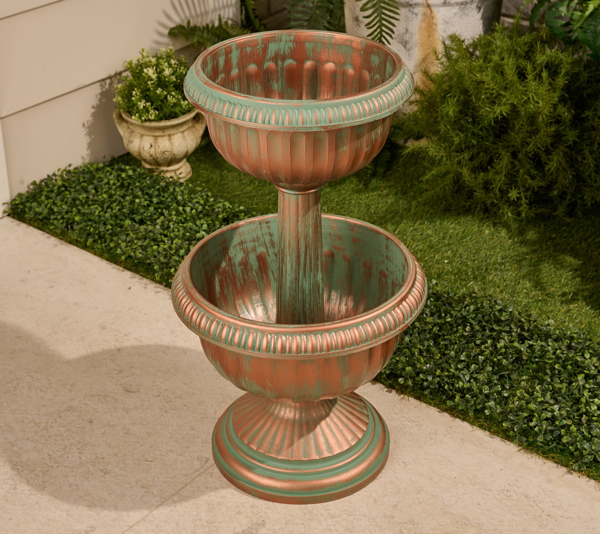 Want a backyard that says high-end designer without busting your wallet? This tiered, weather-resistant planter's got you covered! The lightweight, easy-to-move container is ready to host your thrillers, fillers, spillers, and maybe even some frosty party drinks. From Garden Reflections.