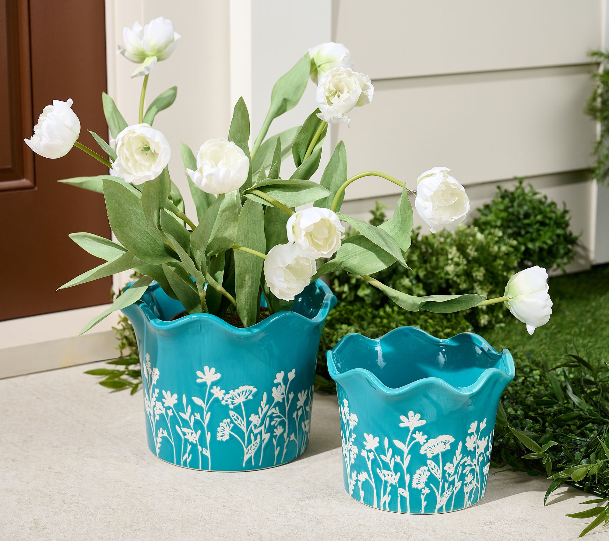 "As Is" Garden Reflections Set of 2 Scallop Top Planters