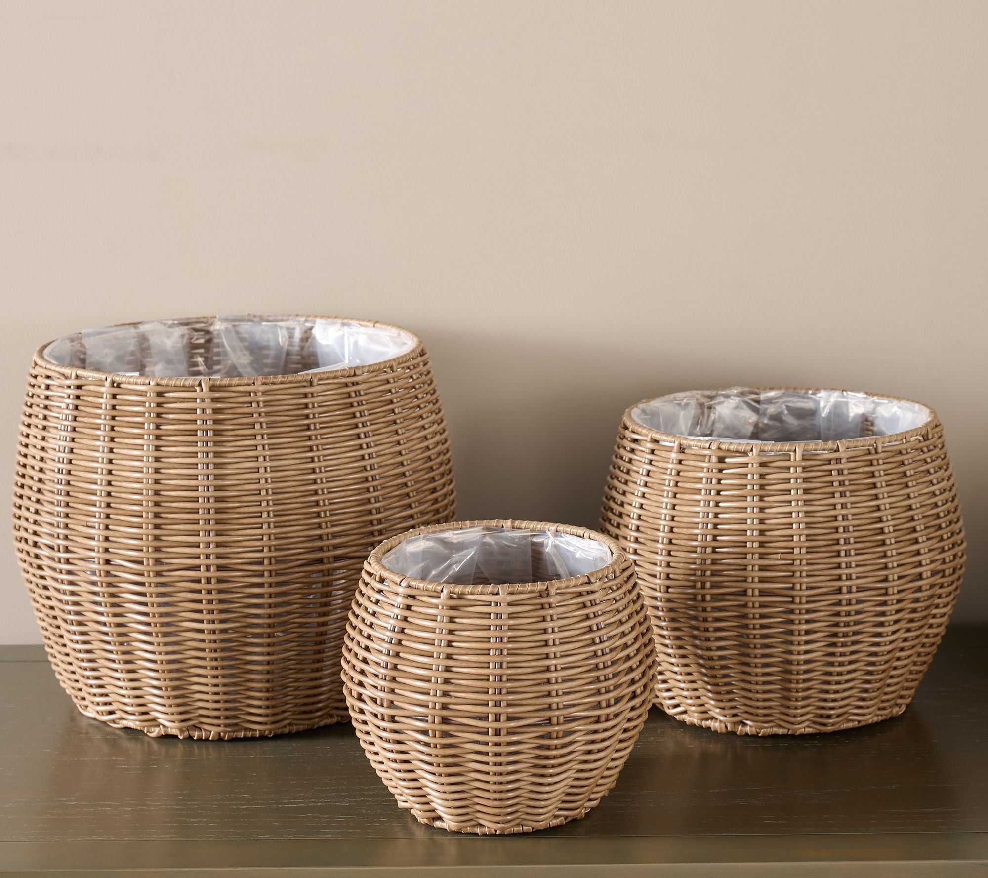 "As Is" Garden Reflections Set of 3 Rattan Planters