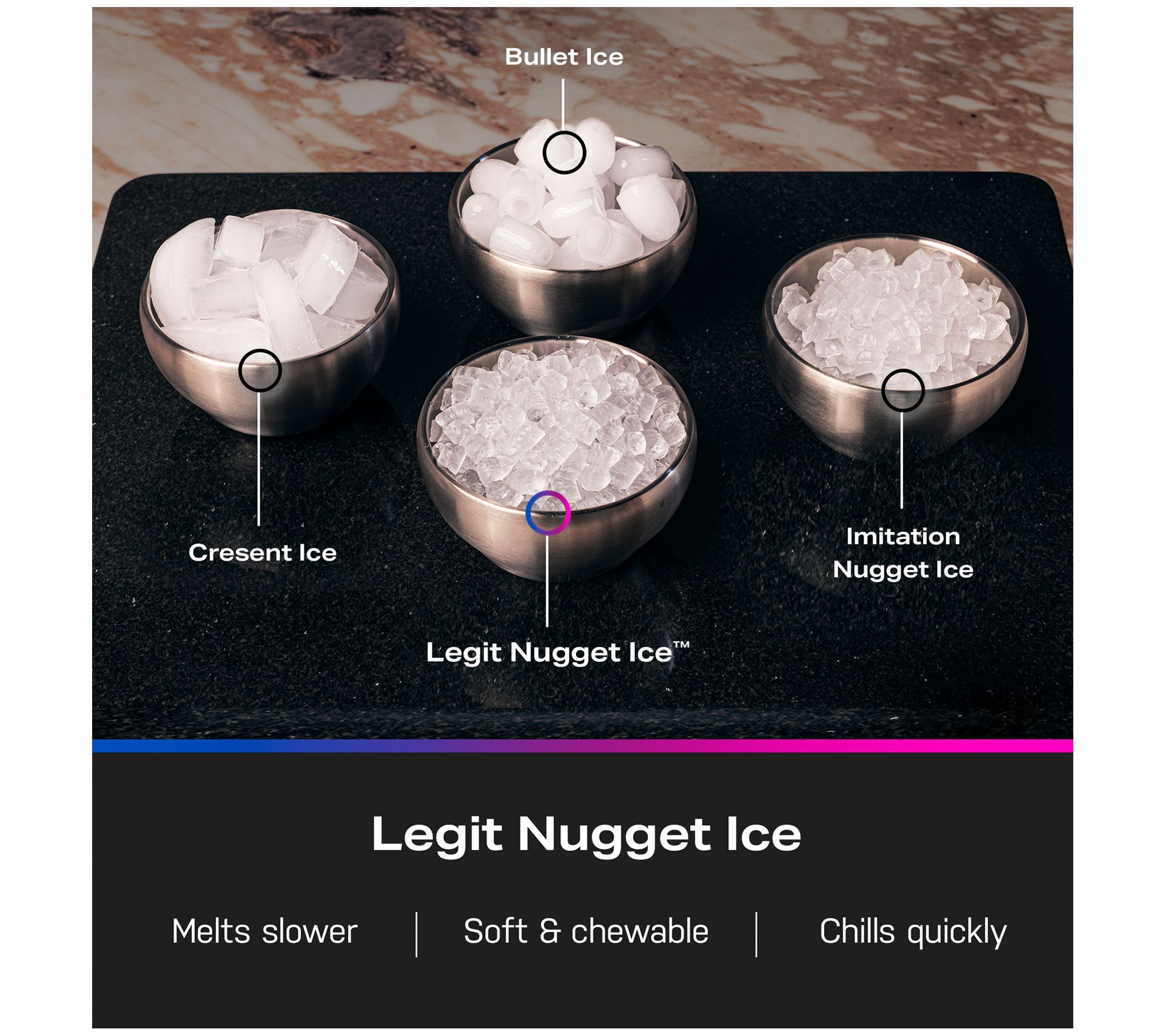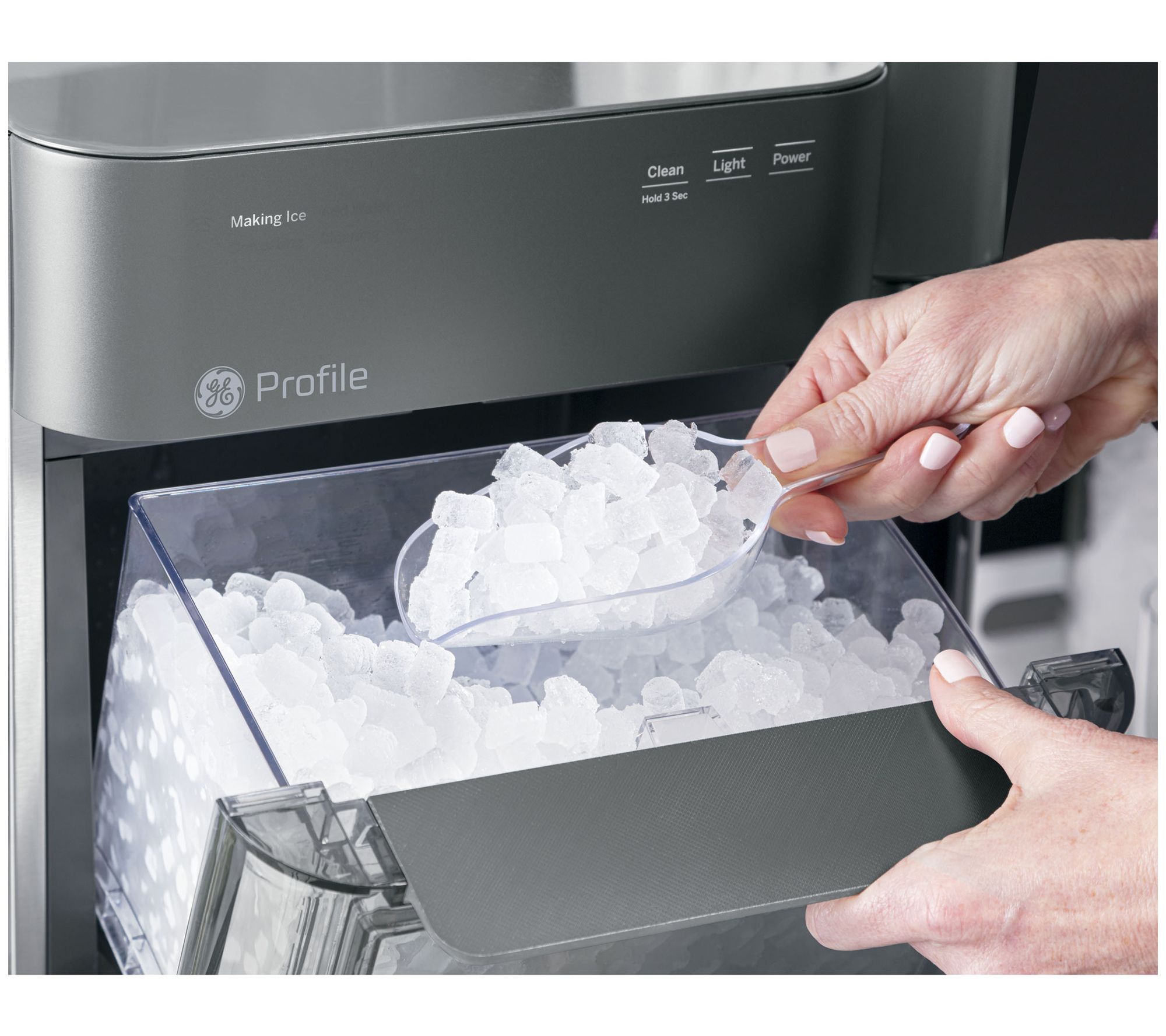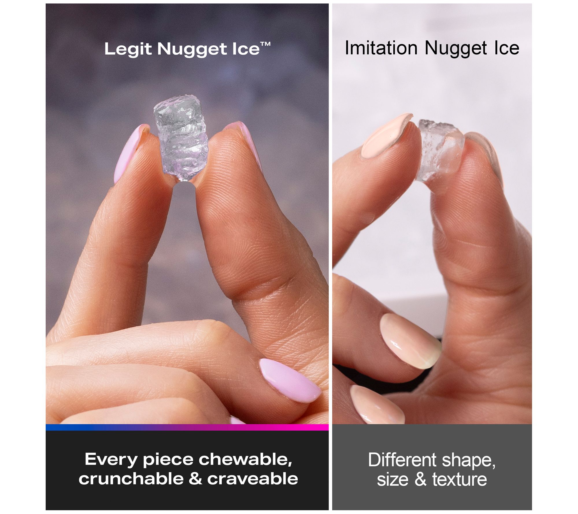 Don't settle for ordinary cubes from the freezer or those large, clumsy bags of store-bought ice. Next time, opt for the good ice. The favorite ice. The nugget ice. From GE.