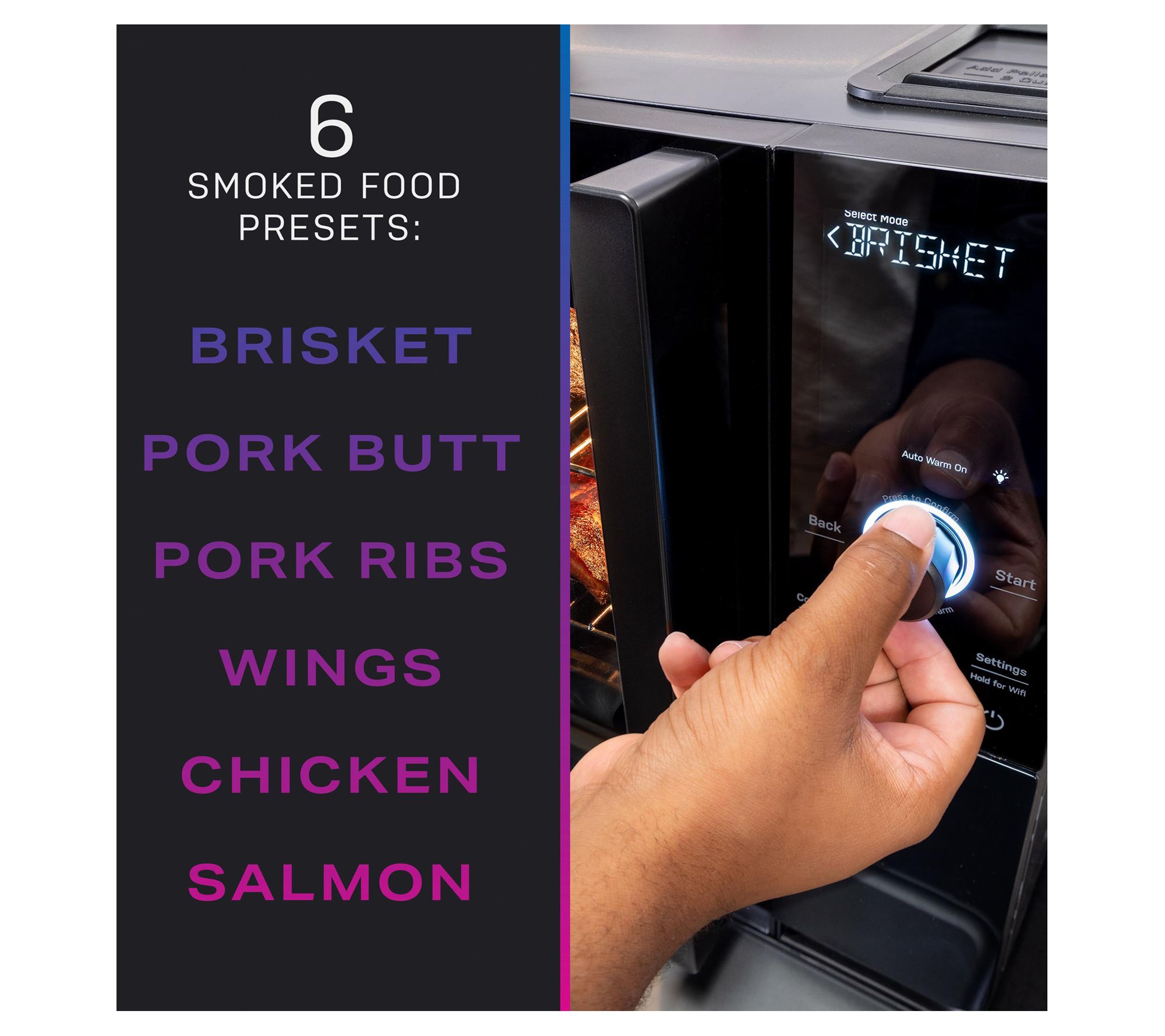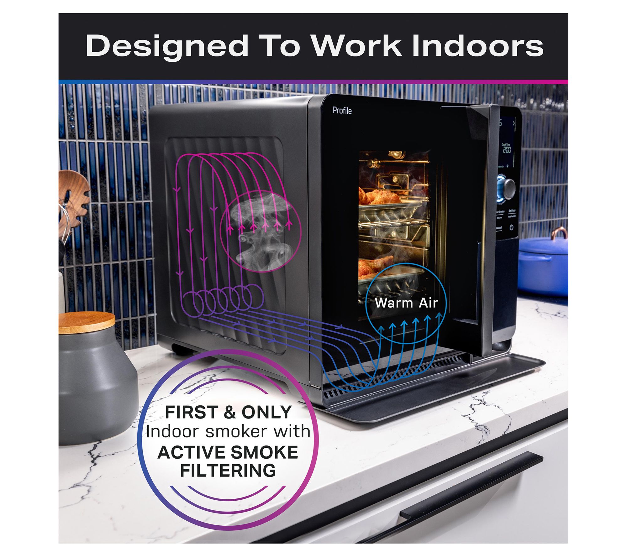 Enjoy the flavor of smoked meat all-year round with the GE Profile Smart Indoor Smoker with Active Smoke Filtration. Featuring five levels of smoke and six built-in food presets, you can perfectly prepare brisket, ribs, chicken wings, and the rest of your favorite recipes using just a 1/4-cup of traditional wood pellets. From GE.