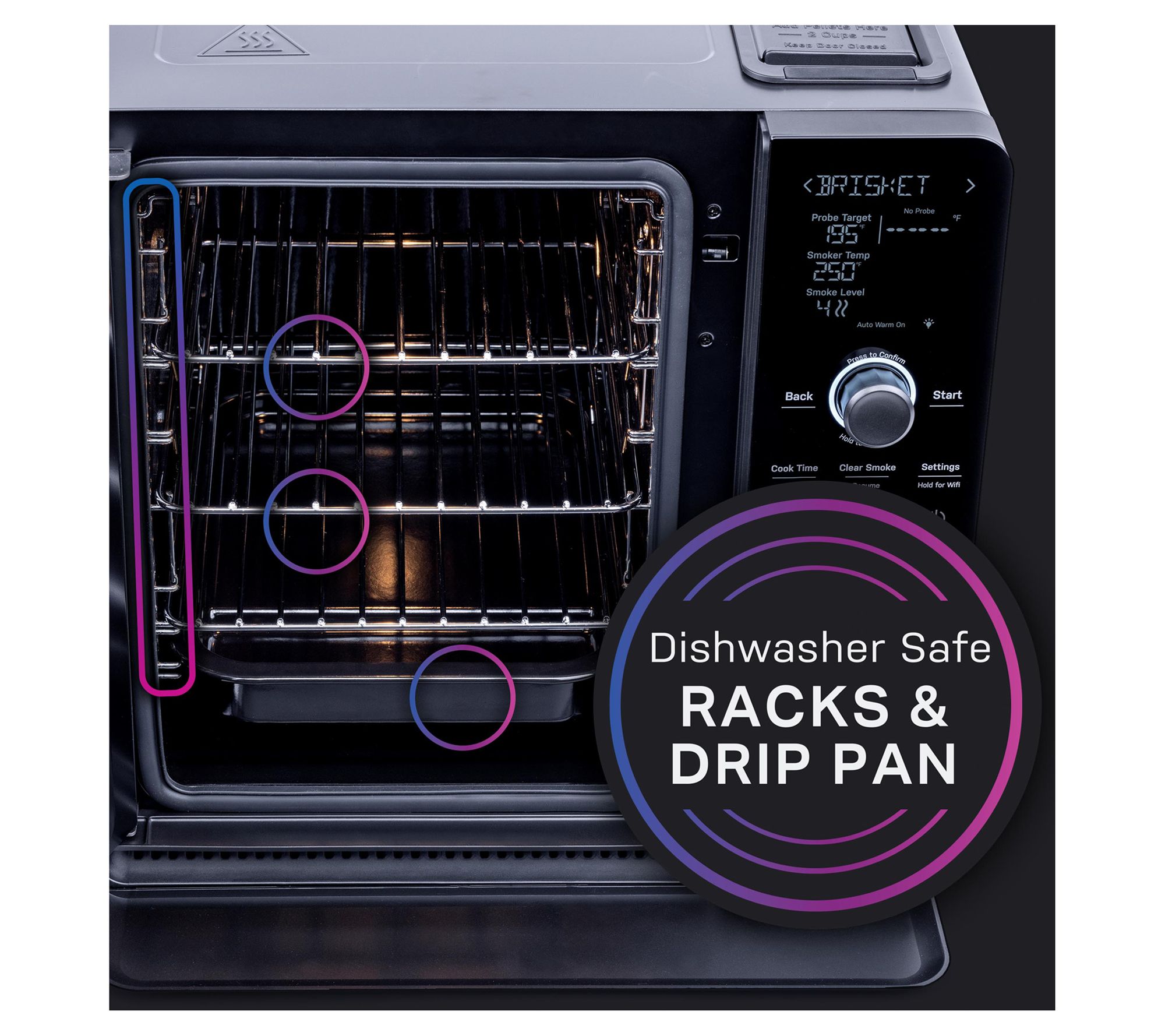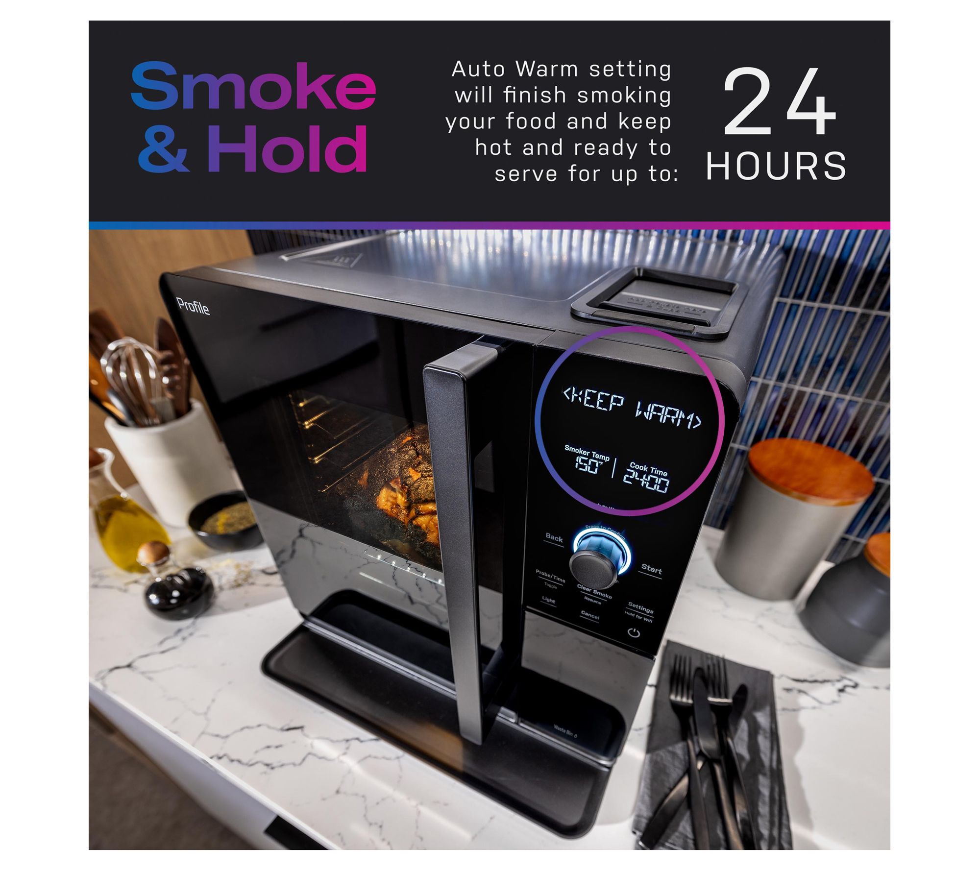 • Includes GE Indoor Smoker, three cooking racks, drip tray, meat probe, 1-lb Profile Pellets, and recipe book
