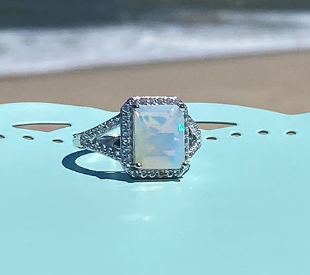 "As Is" Generation Gems Emerald Cut Ring w/ White Topaz Halo
