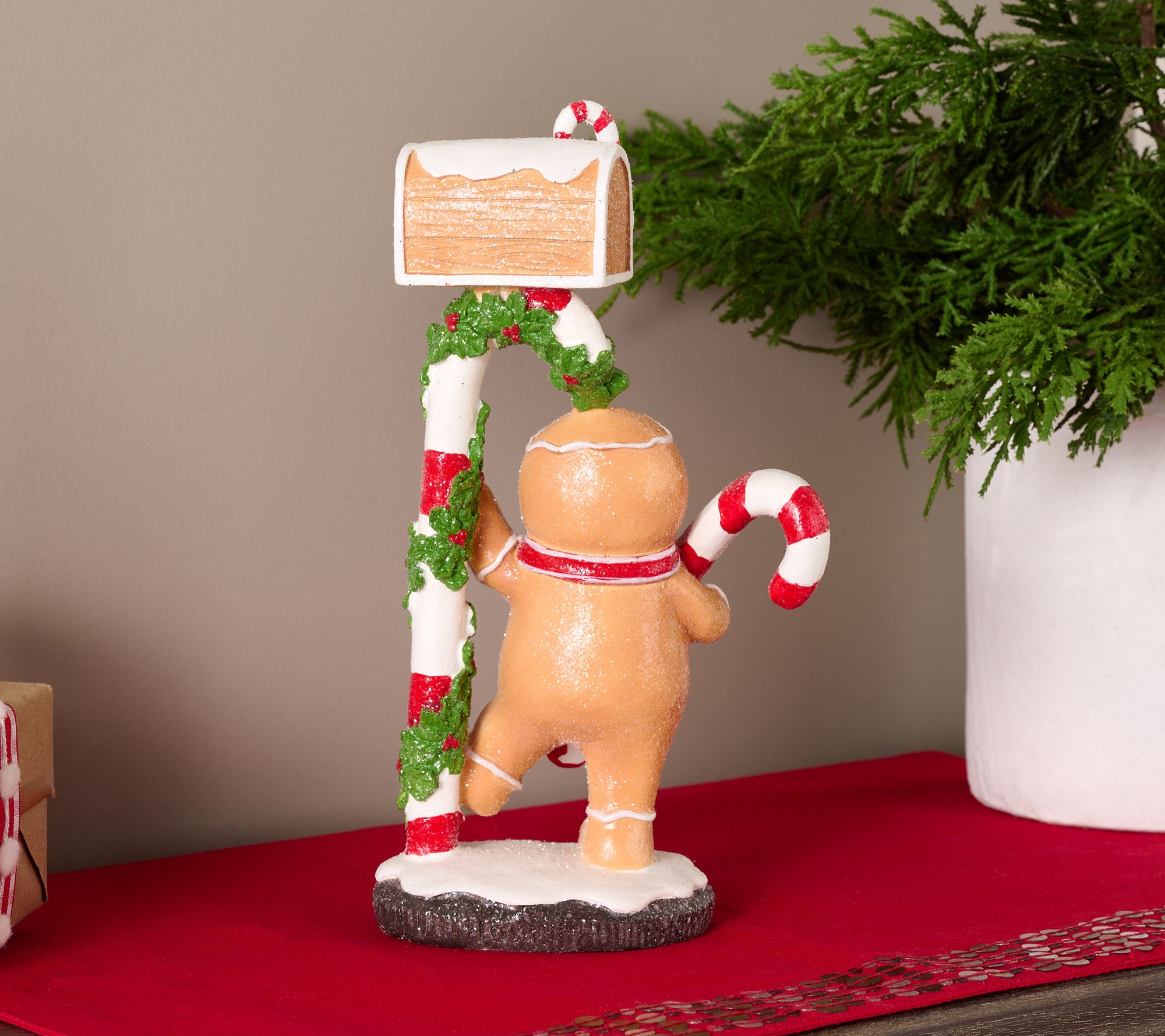Cheer is in the mail! Relish in the joy of all those holiday cards arriving in your box with this sweetly decorated gingerbread boy figurine. From the Valerie Parr Hill Collection.