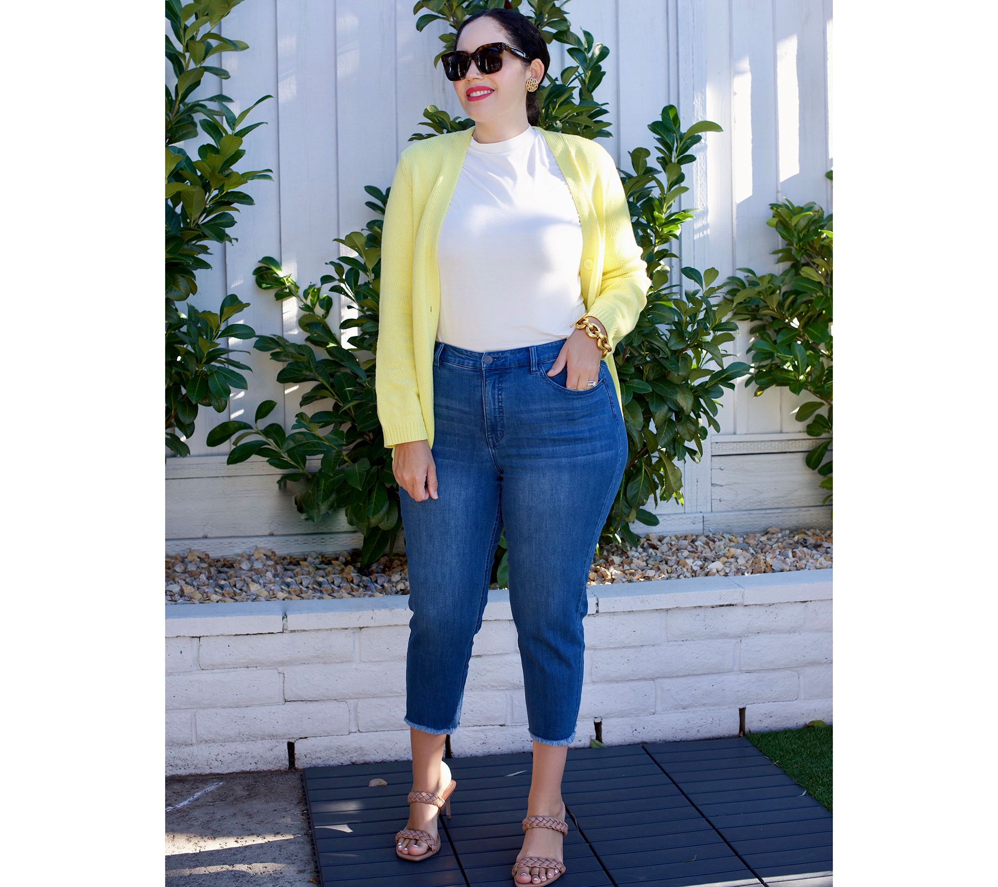 Wear these totally posh jeans with heels, a tucked-in tee, and your new handbag for an outfit that's ready to help you slay the day in style. From Girl with Curves.