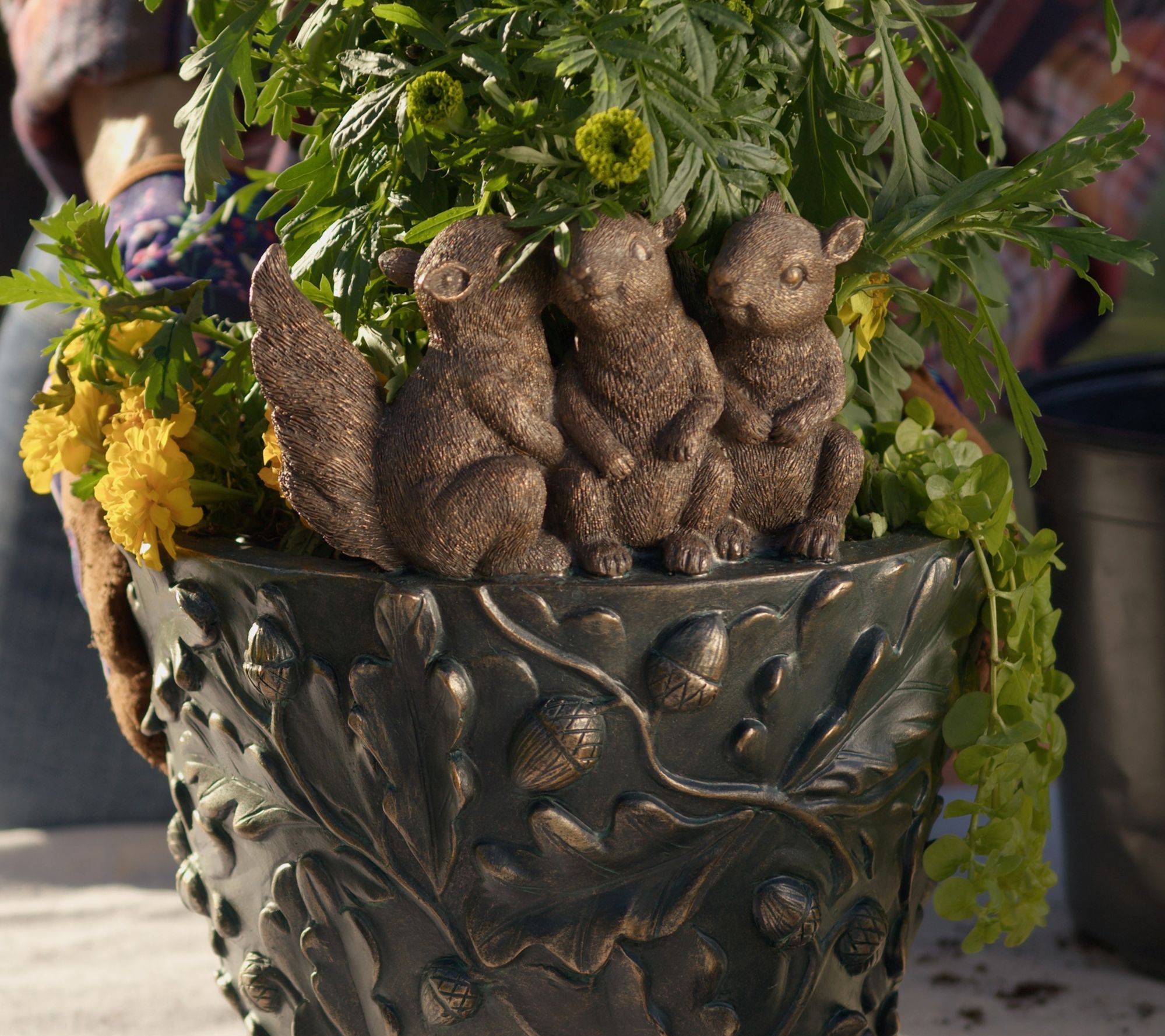 Bring delight to indoor or outdoor spaces with this faux patina planter, perfectly accented by whimsical critter pals and a rustic finish. The lifelike critters create a charming showcase for your favorite greenery, whether nestled on a porch or brightening up your sunroom. Add a pop of personality alongside flowers or herbs while making every corner feel more inviting. From Girl Next Door.