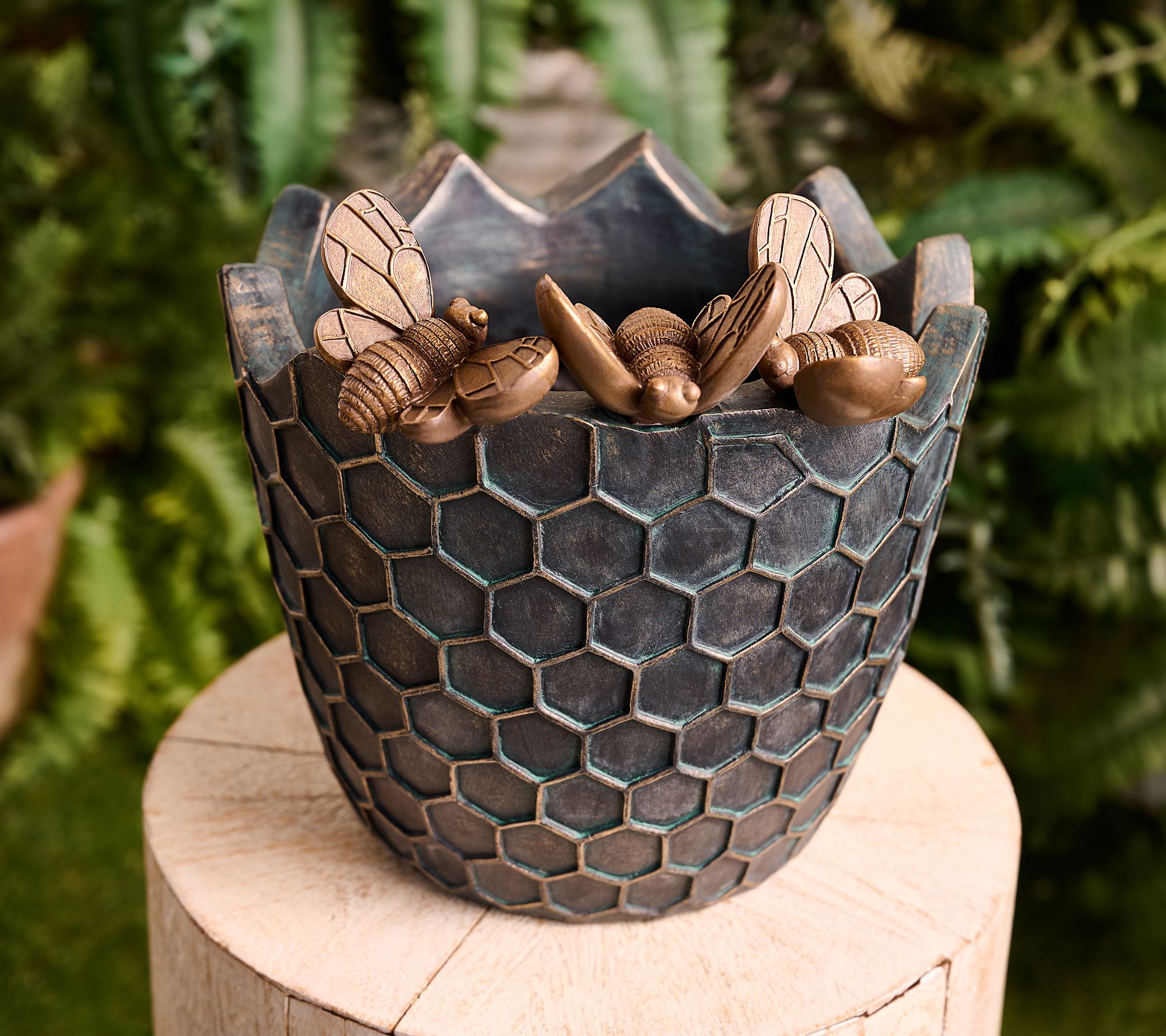 Three adorable critter pals have found their happy place perched atop this Girl Next Door planter. The faux patina finish adds a charming, weathered look that blends seamlessly in any outdoor space. With its whimsical design, it's perfect for showcasing your favorite plants in style. From Girl Next Door.