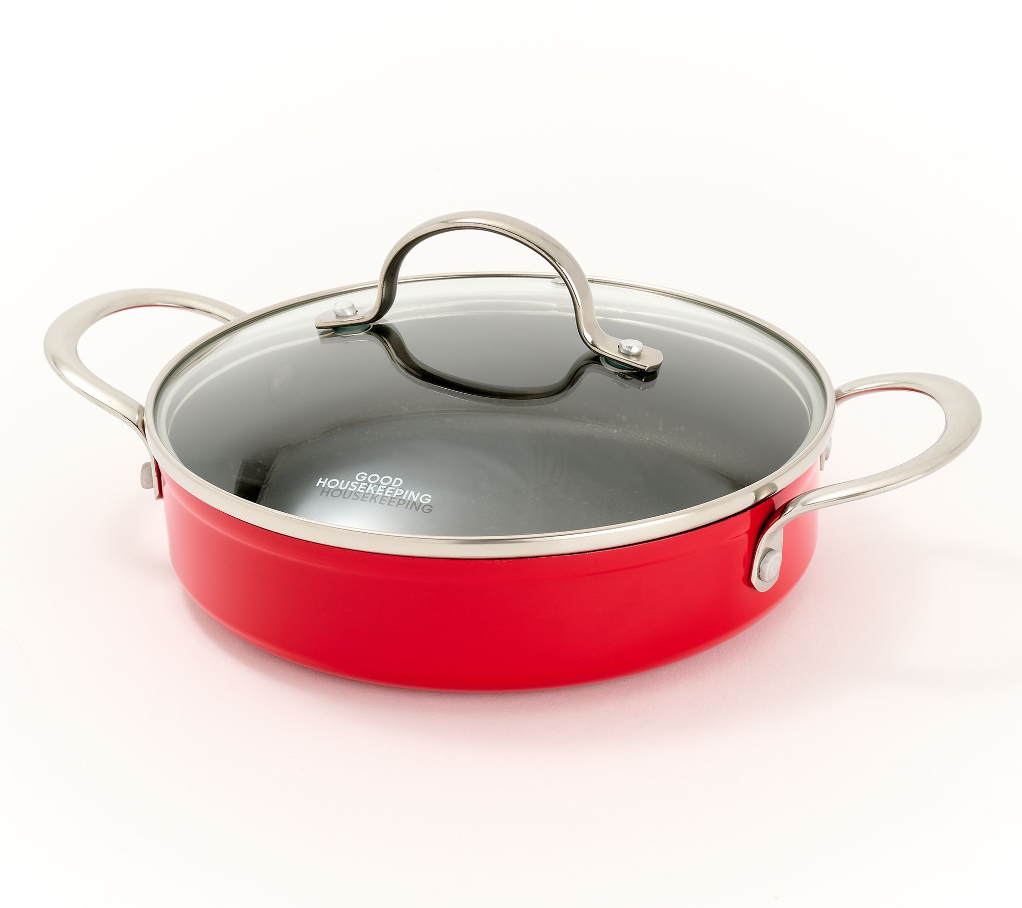 Whip up a meal for your loved ones with this Good Housekeeping saute pan. Its straight-sided walls maximize cooking space -- ideal for preparing generous portions -- while the included basket lets you steam up a storm. The Relia-Pan nonstick coating ensures premium food release and easy cleanup, making every cooking session a breeze. From Good Housekeeping.