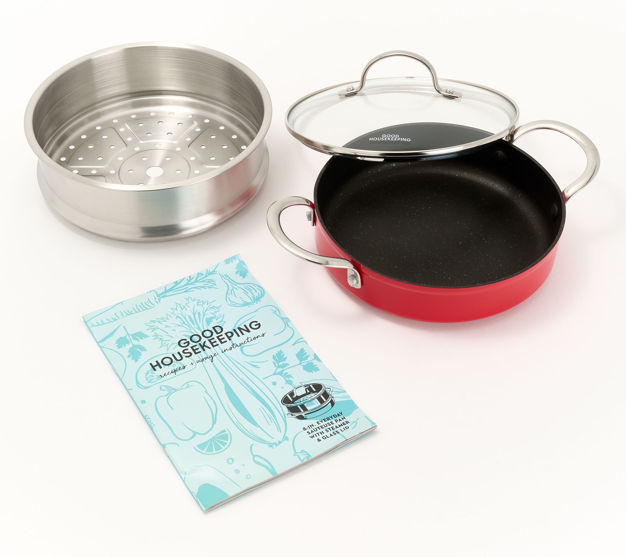 "As Is" Good Housekeeping SS 8" Sauteuse Pan w/ Steamer and Glass Lid