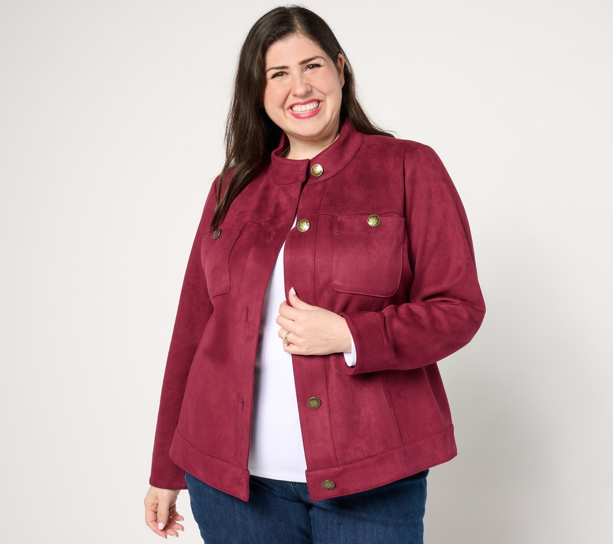 "As Is" GRAVER Susan Graver Faux Suede Button Front Jacket
