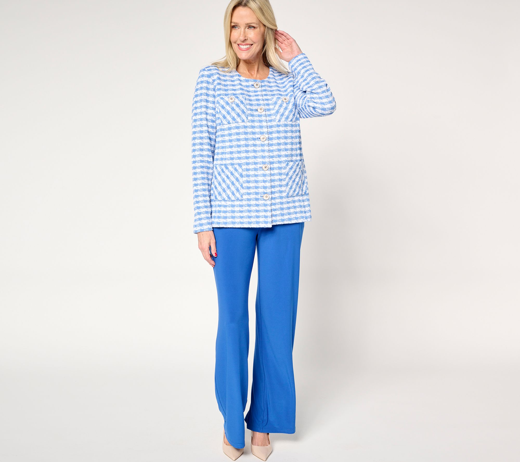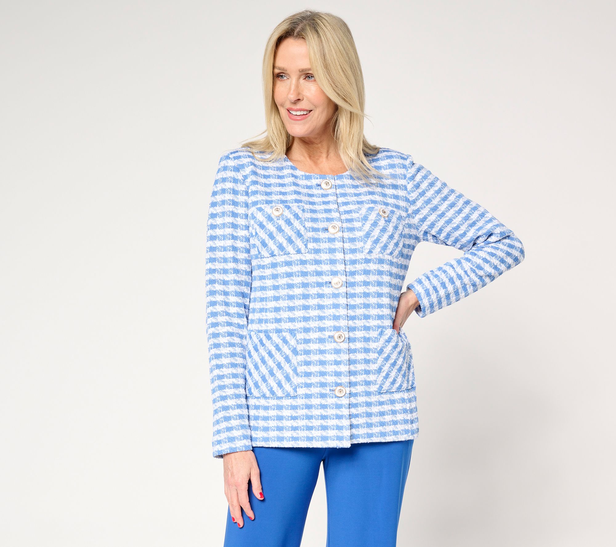 "As Is" GRAVER Susan Graver Knit Boucle Jewel Neck Button Jacket