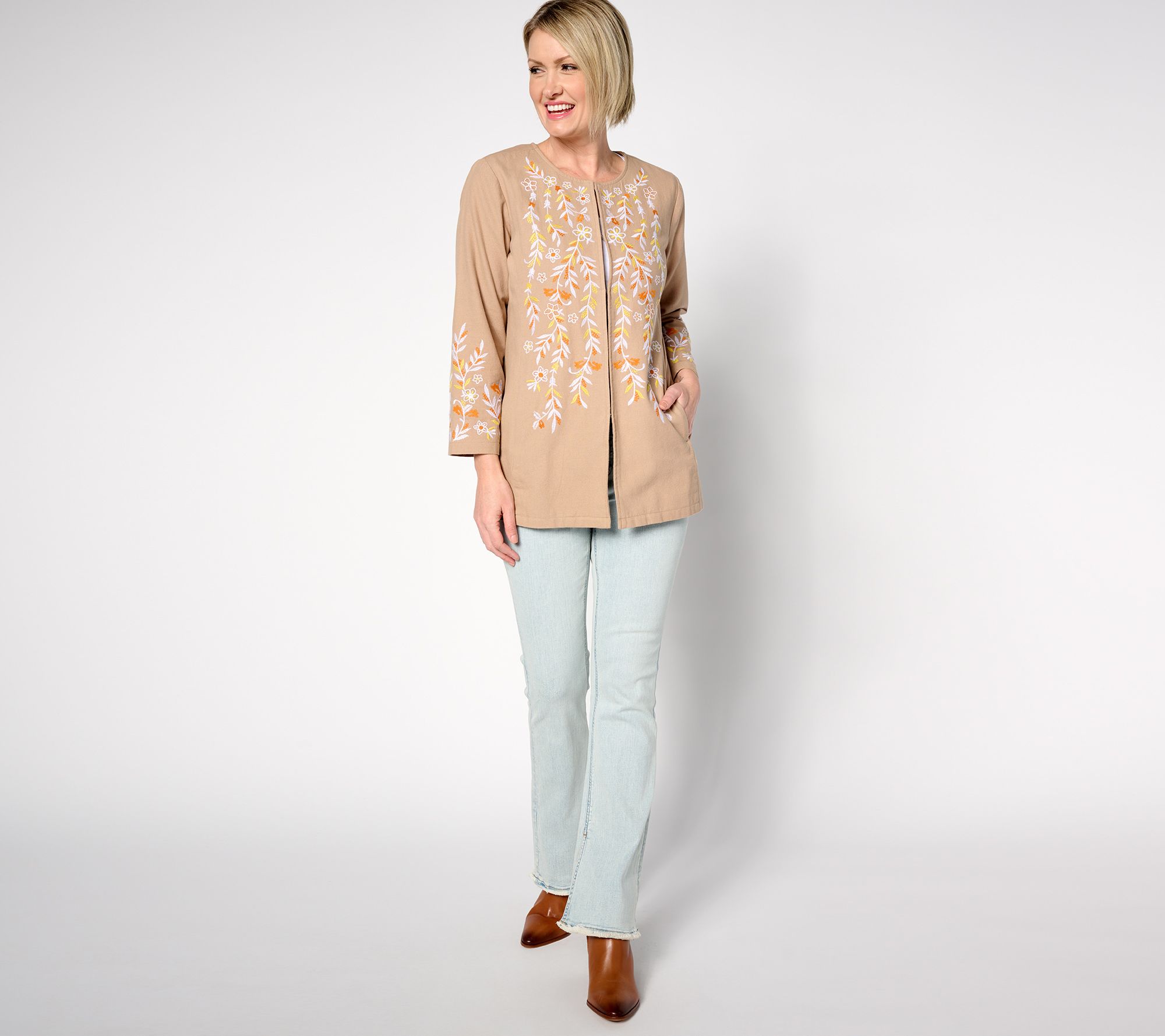 "As Is" GRAVER Susan Graver Petite Embroidered Cotton Topper
