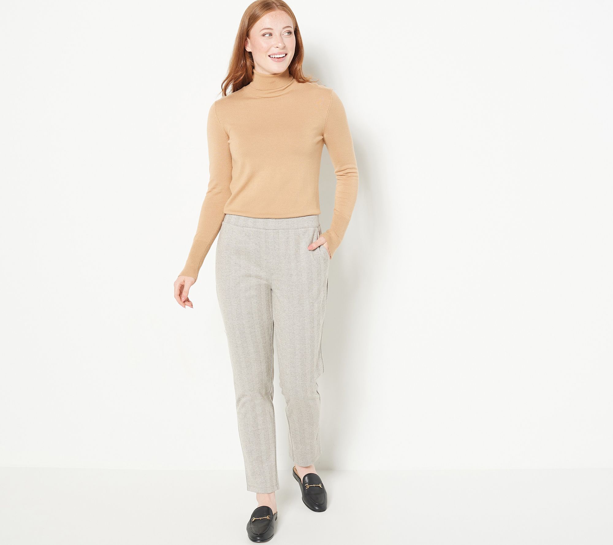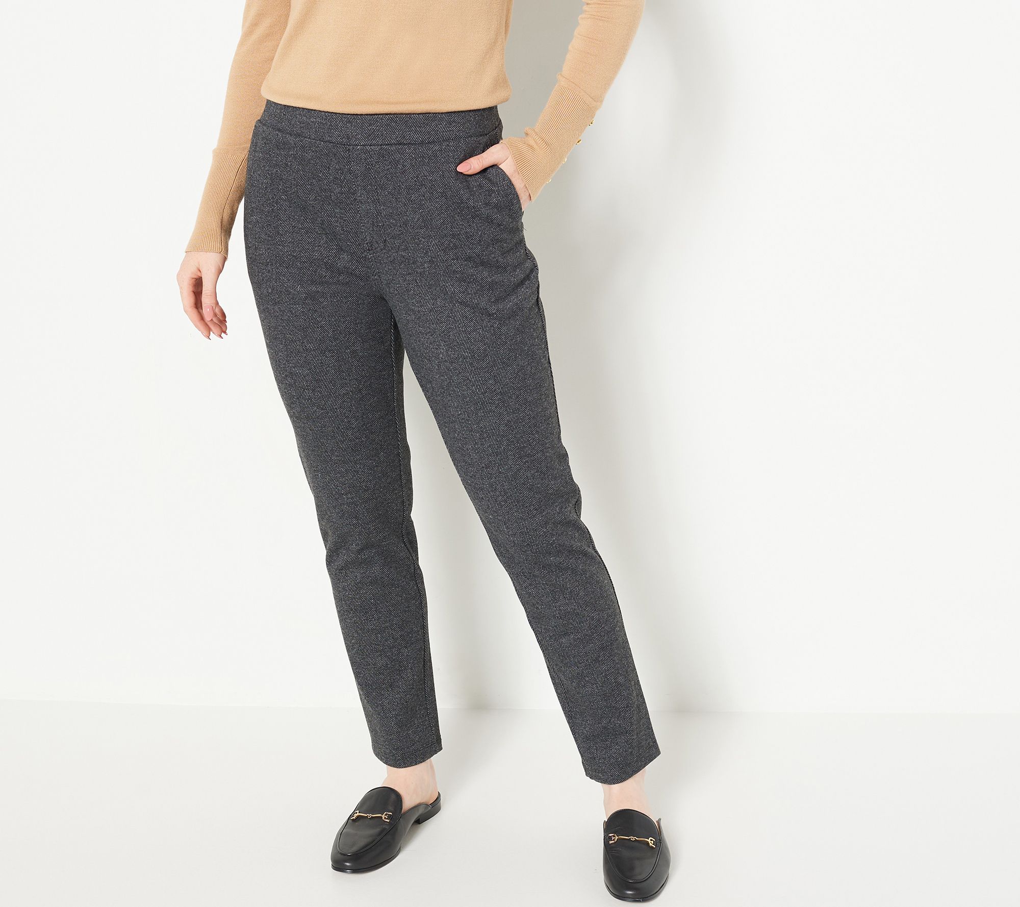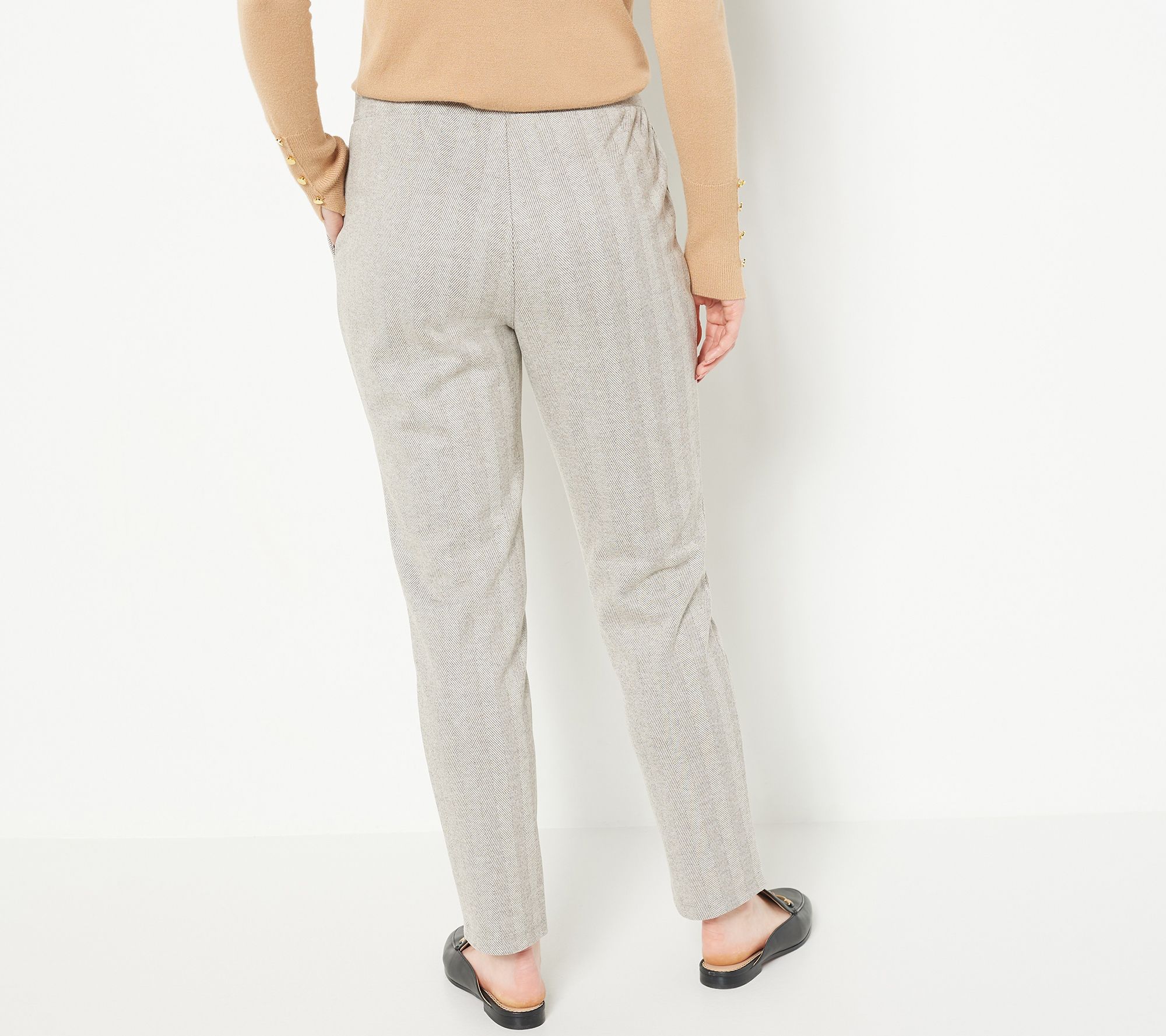 Polished, poised, and absolute perfection when paired with a chunky knit sweater, button-down blouse, or mock-neck bodysuit, these pants rise to meet any occasion. From Susan Graver.