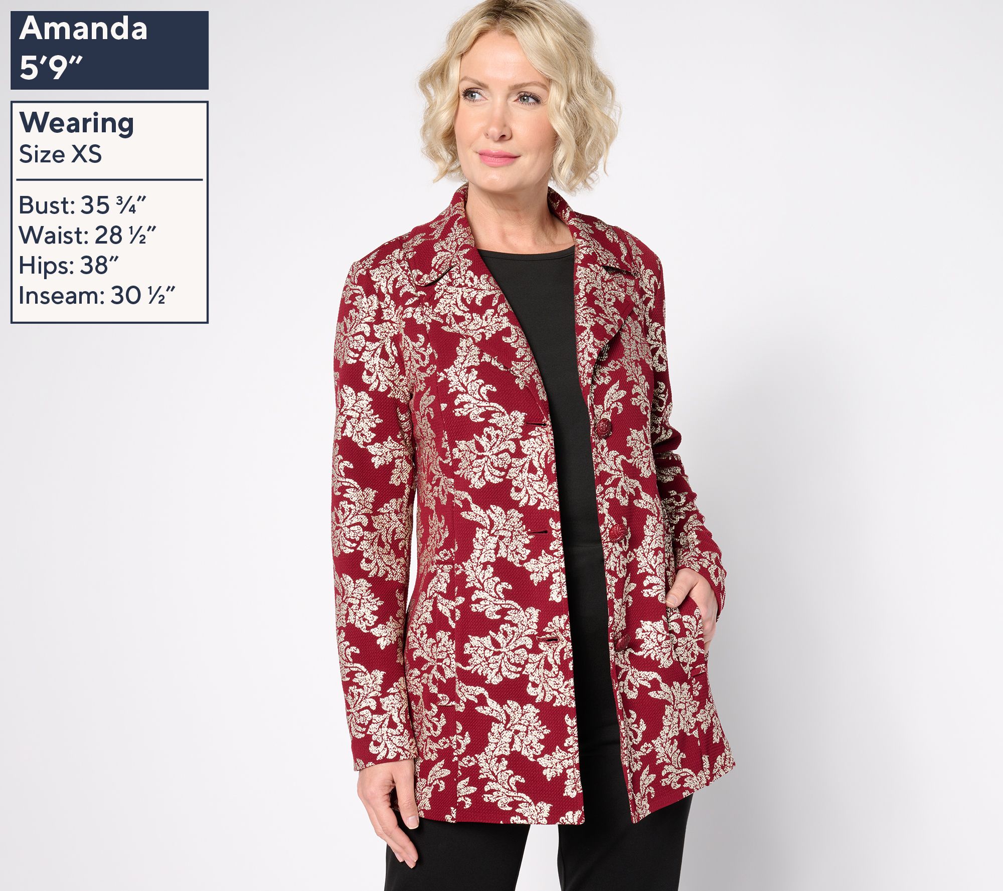 "As Is" GRAVER Susan Graver Petite Metallic Print Knit Topper