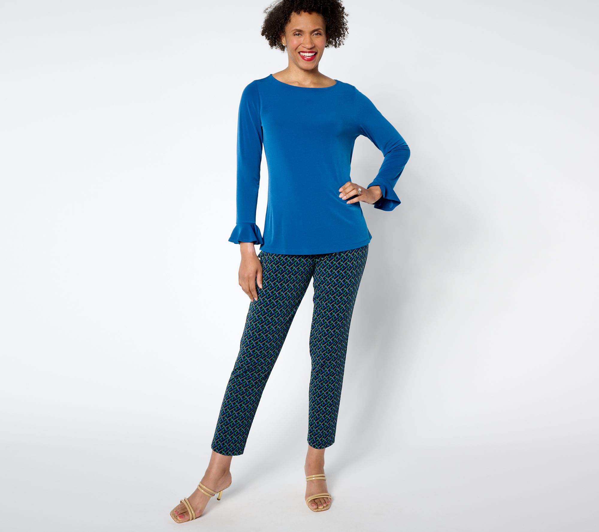 Looking polished never felt so fabulous. Thanks to LK Fusion fabric and a pull-on design, these printed ankle pants have a slightly structured yet easygoing style that keeps you ready for the office, date night, and more. From Susan Graver.