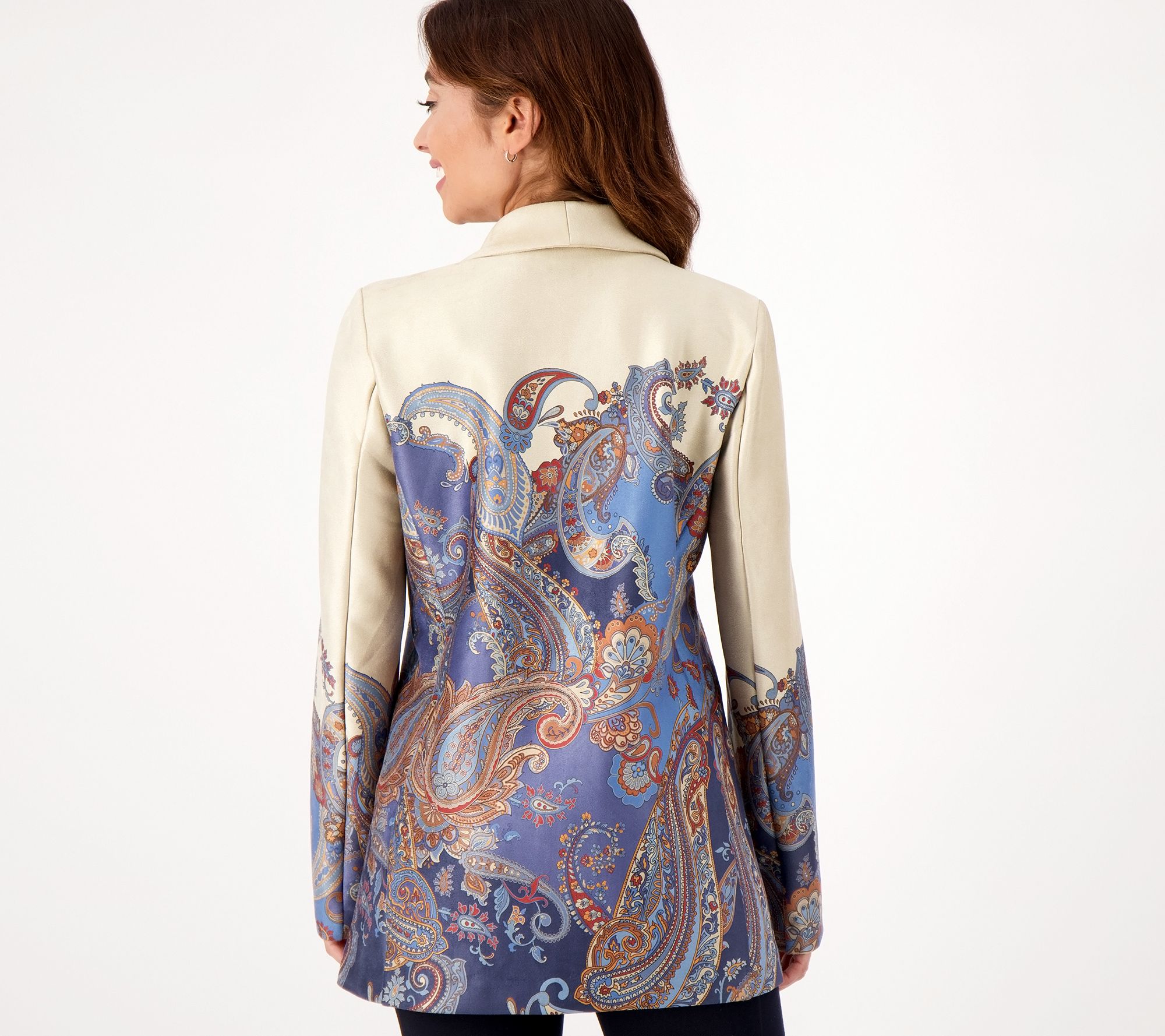"As Is" GRAVER Susan Graver Petite Printed Suede Shawl Collar Jacket