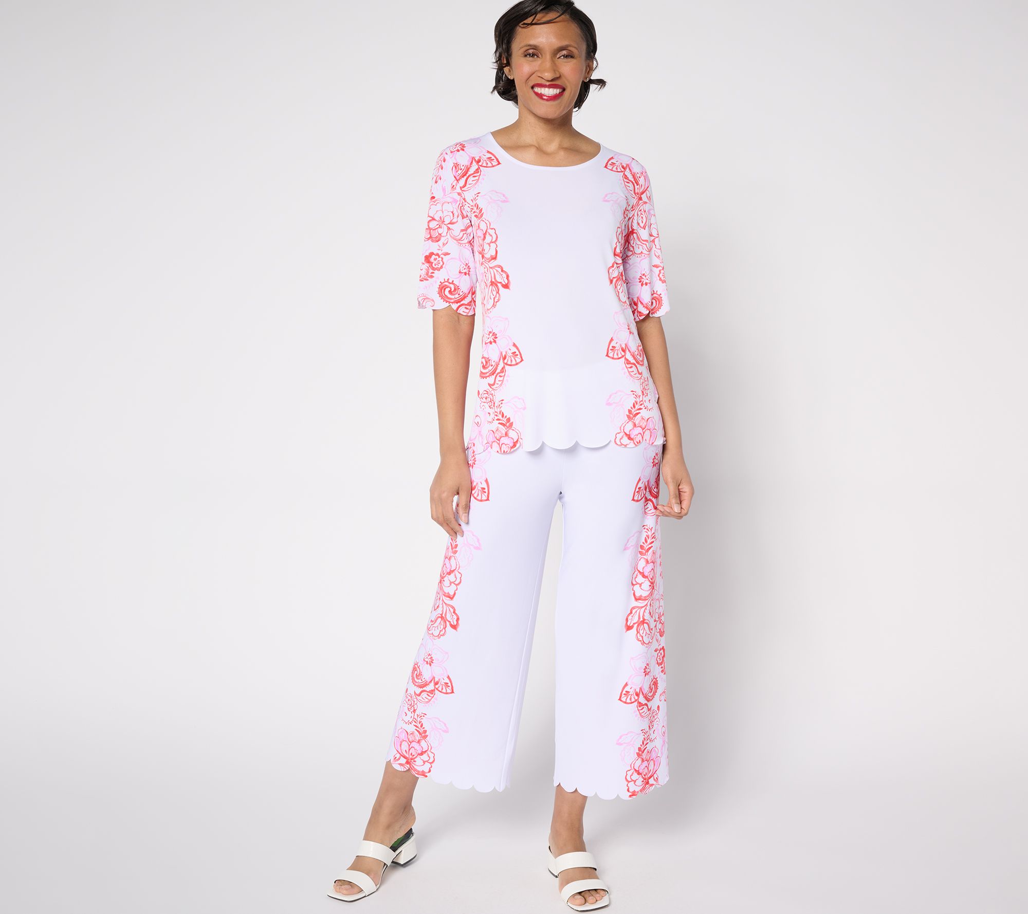 "As Is" GRAVER Susan Graver Printed Liquid Knit Scalloped Hem Top