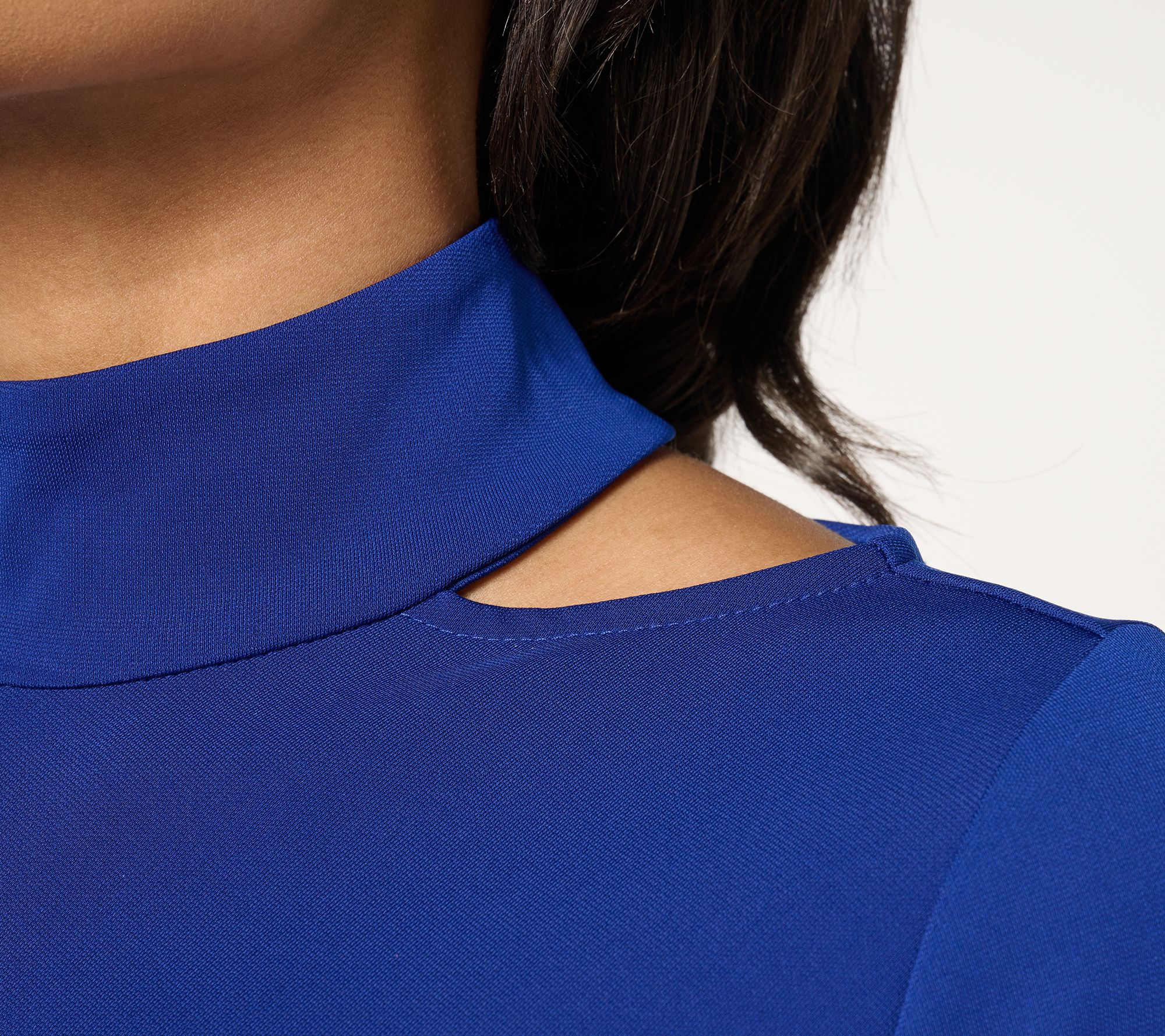 Welcome to your wow moment. Slip on this Premier Knit dress -- beautifully structured and nipped in at just the right places -- whenever you want to make an impression. A mock neck provides comfortable coverage with just enough playful reveal (cue the closeup). From Susan Graver.