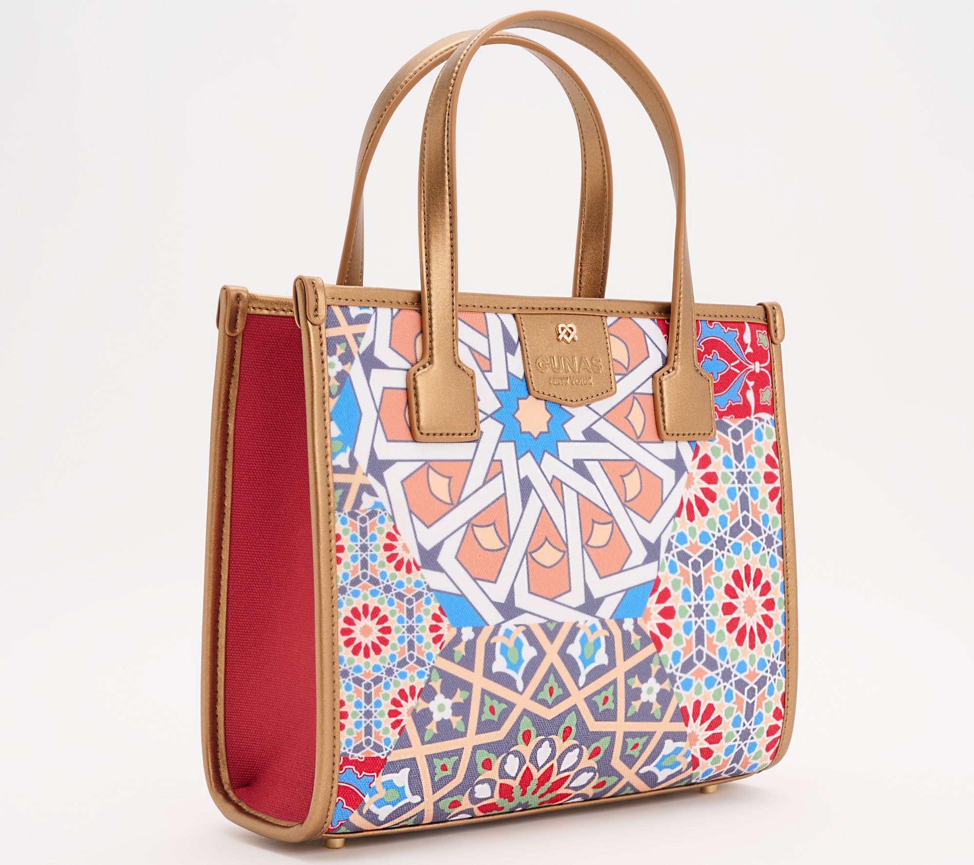 Inspired by mosaic tiles and nature, this mini tote bag combines a casual silhouette with a beautiful print, bright colors, and a splash of culture. From Gunas New York.