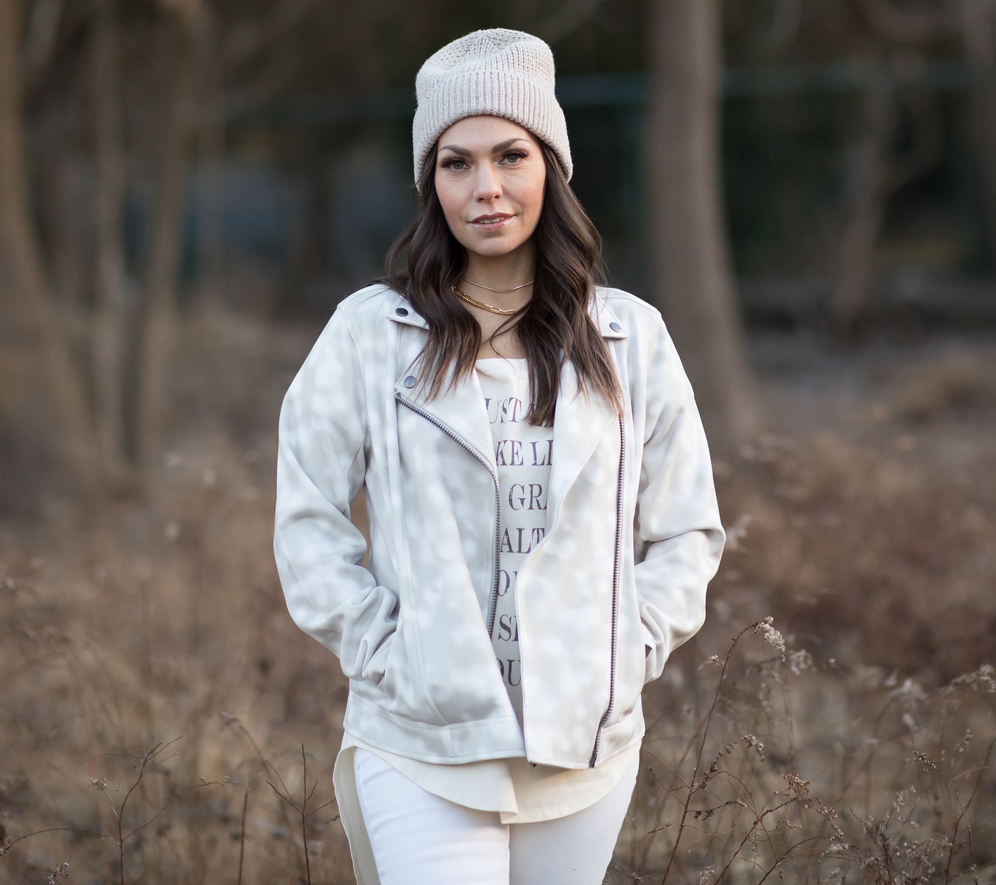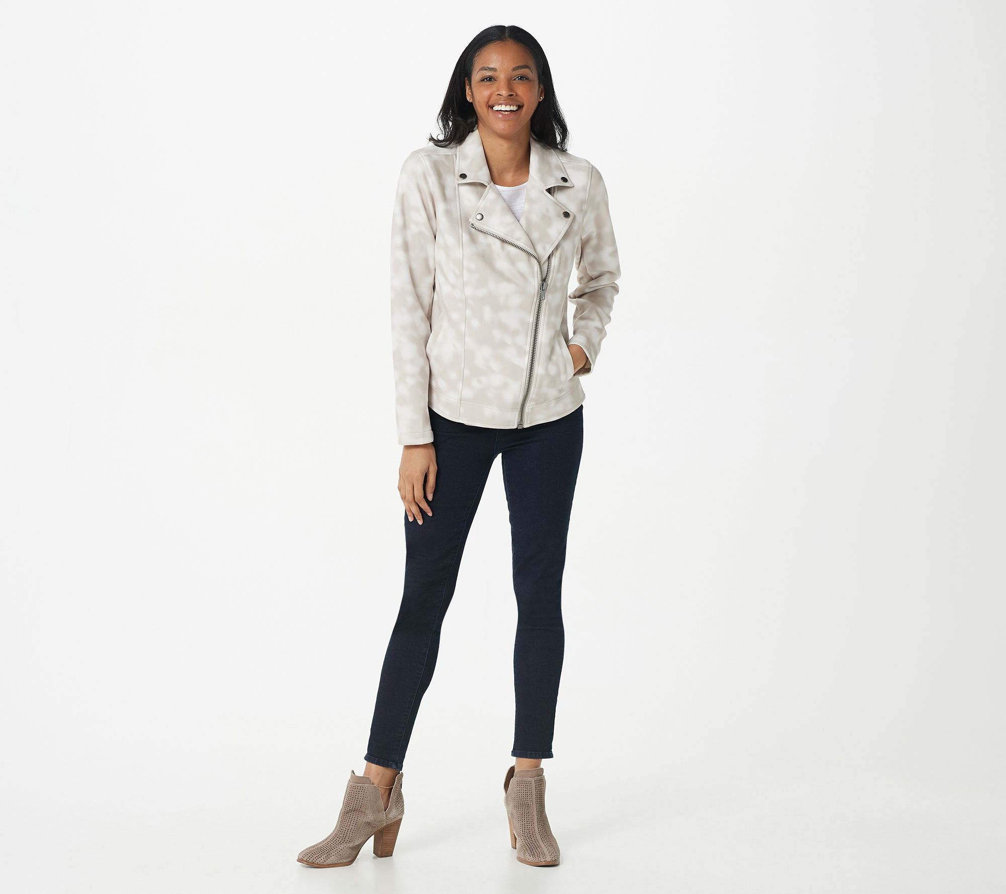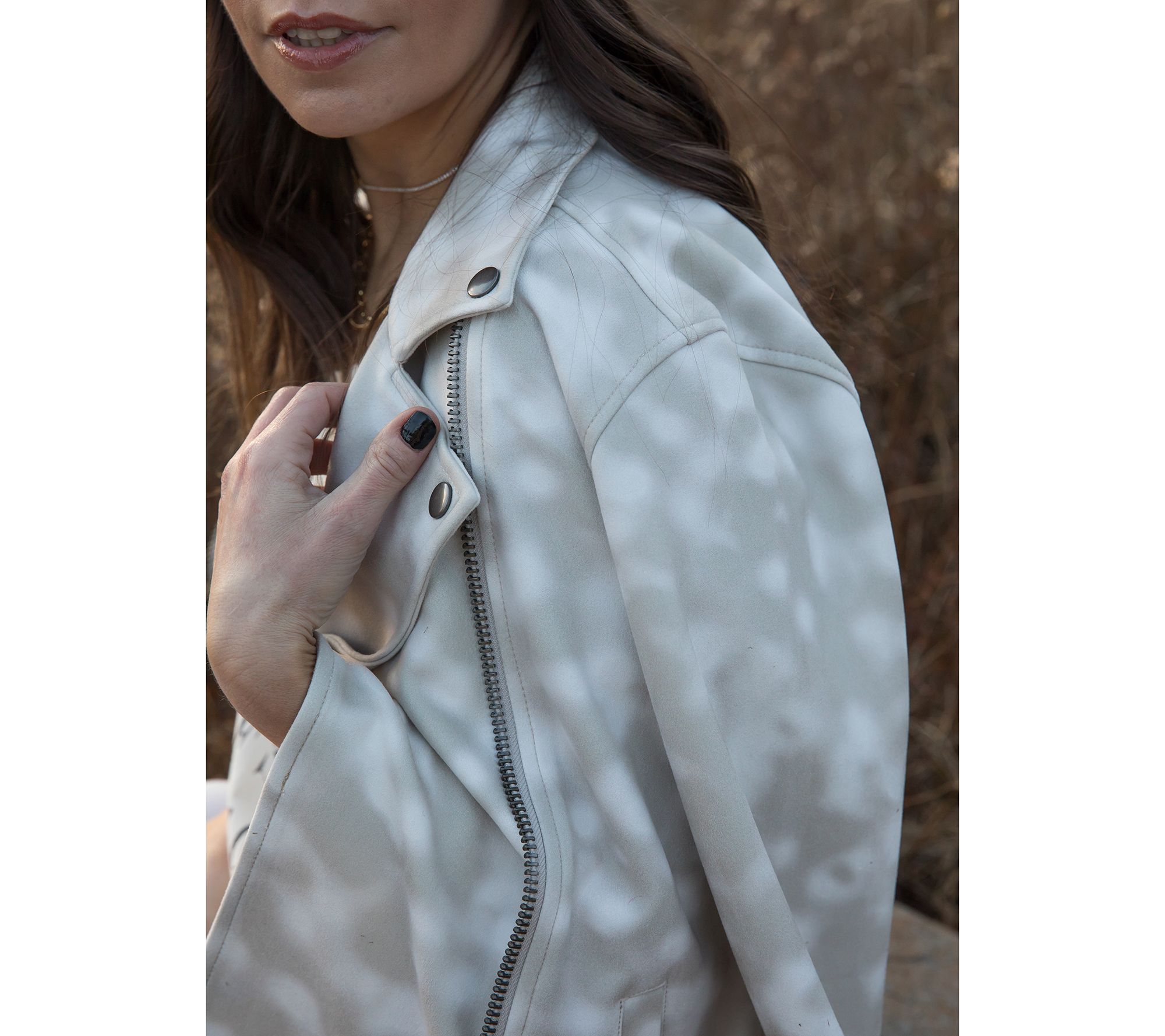 Smooth, sassy, spectacular! When you're ready for your next adventure, don't forget to grab this pastel biker jacket as you head out the door. From Haute Hippie Tribe.