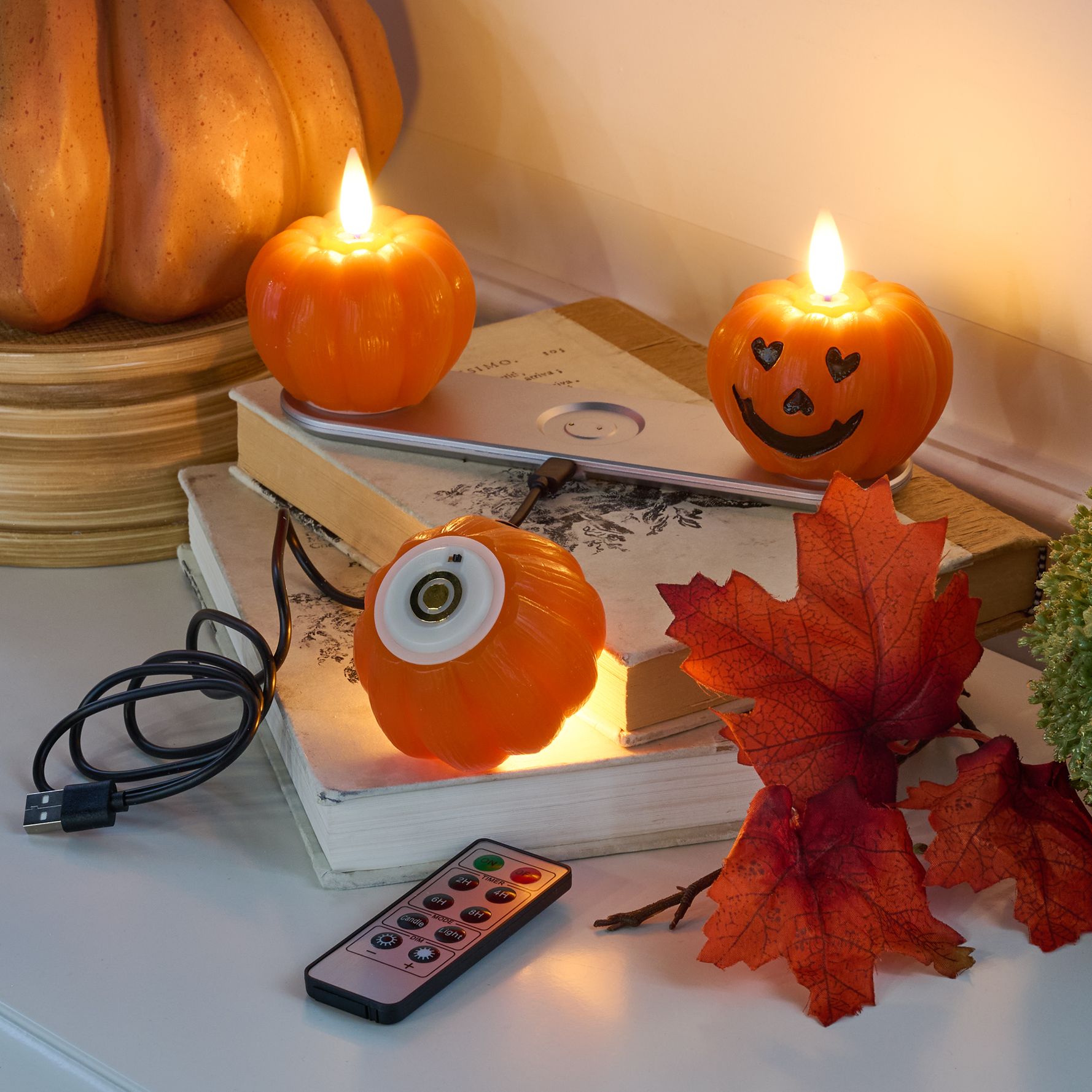 • Includes three rechargeable LED tealight candles, charging base, remote, and USB cable