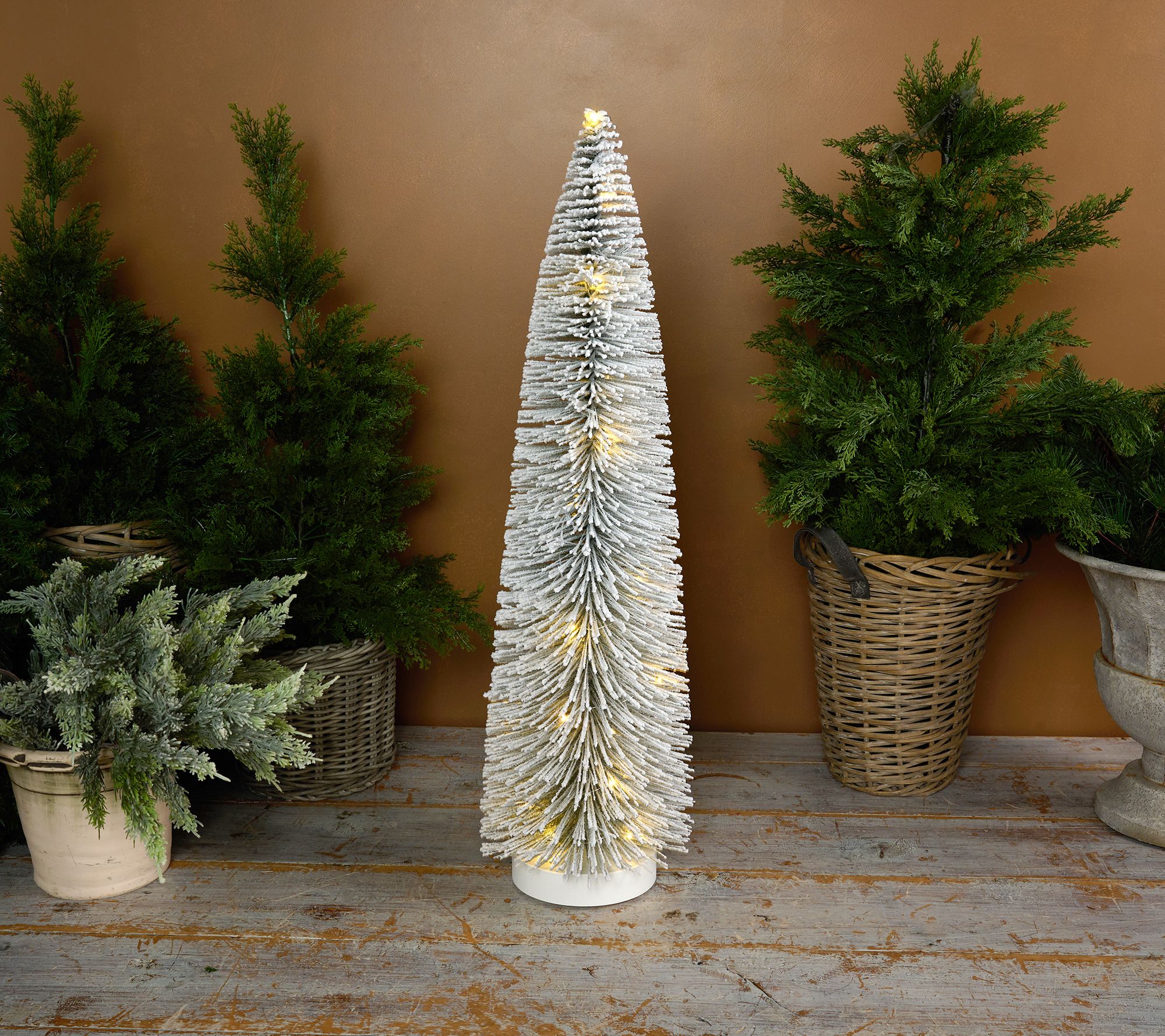 If you love seasonal decorating but you're starved for space, think vertical! This illuminated 36"H bottlebrush tree invites the spirit of the season with its snow-flocked branches and warm white lights, yet offers a small base footprint with a strikingly tall presence, so you can still enjoy decorating without having to ditch any of your existing decor. From Home Reflections®.