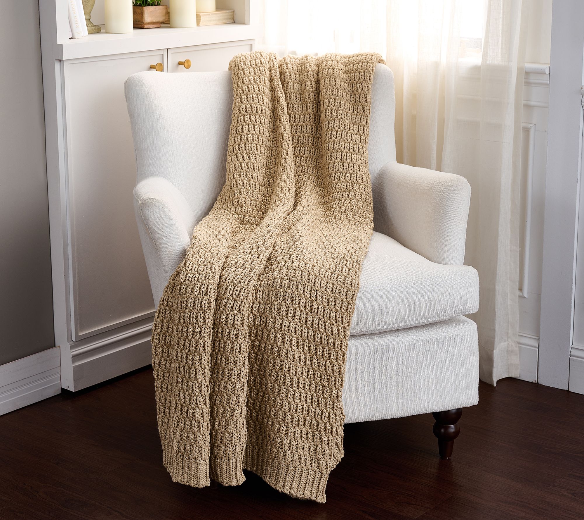 The temperature is turning cool so it's time to cozy up with this lovely seed-stitch knit throw. Perfect for adding a touch of warmth and style to your bed or couch, this throw also makes a thoughtful gift. From Home Reflections®.