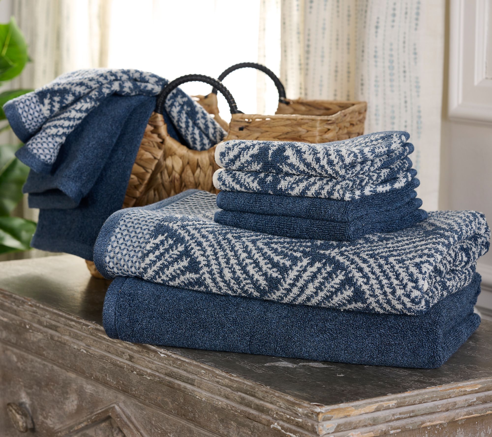 • Includes solid bath towel, jacquard bath towel, solid hand towel, jacquard hand towel, two solid wash cloths, and two jacquard wash clothes