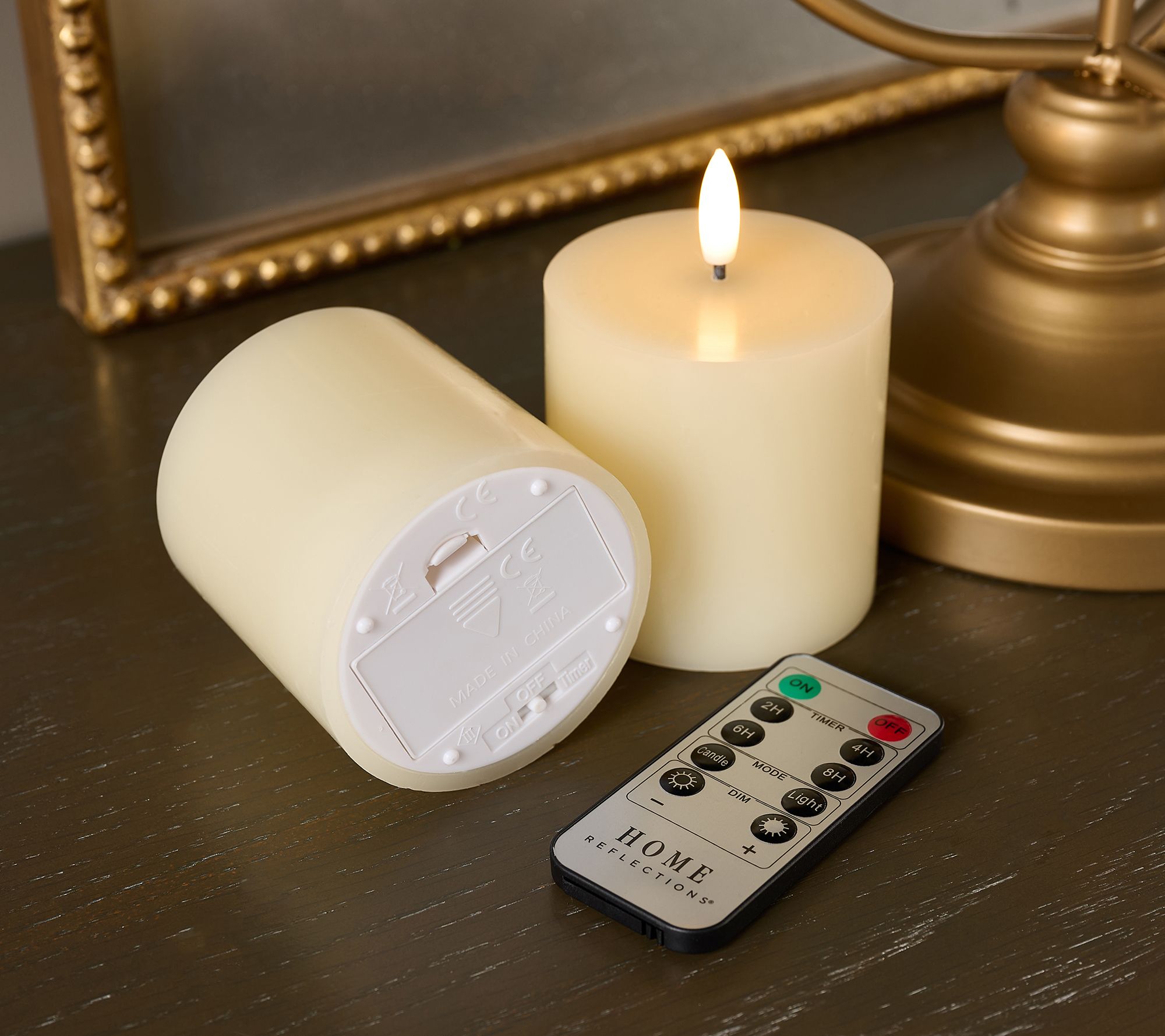 Love a nostalgic decor moment? (Us, too!) This inviting candelabra and set of four pillars create a graceful focal point on your table or mantel that invites in the charm of another era -- with the worry-free tech of flameless candles. Effortlessly create a cozy setting for holiday gatherings (bustling children welcome) or quiet evenings at home. The included remote lets you choose your ideal timer, so the warm glow lasts just as long as you wish. From Home Reflections®.