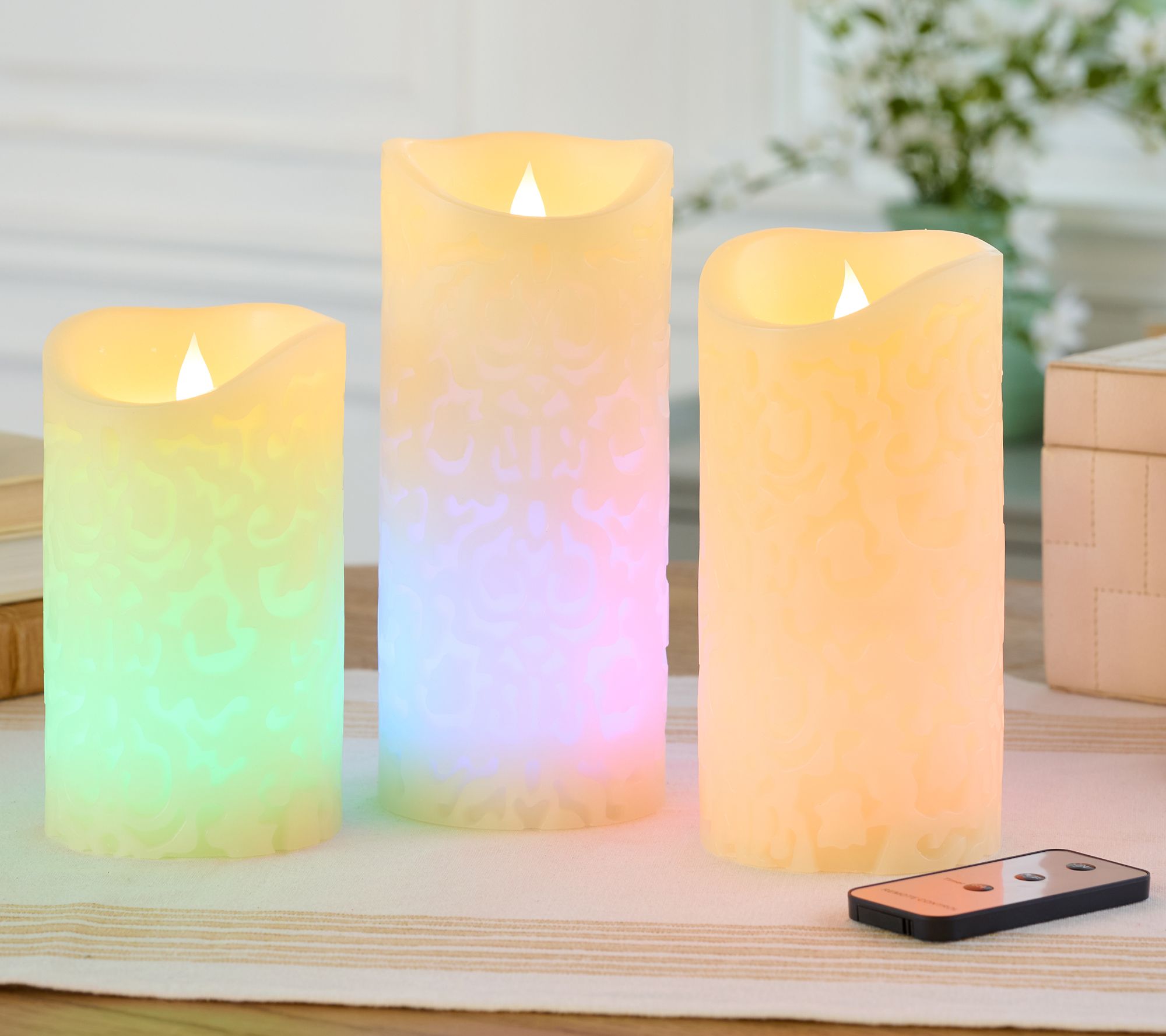 Brighten your space when you place these color-morphing flameless pillars on a coffee table or bookshelf and enjoy the warm candlelit glow (without the hassle of melted wax). From Home ReflectionsTM Decor.