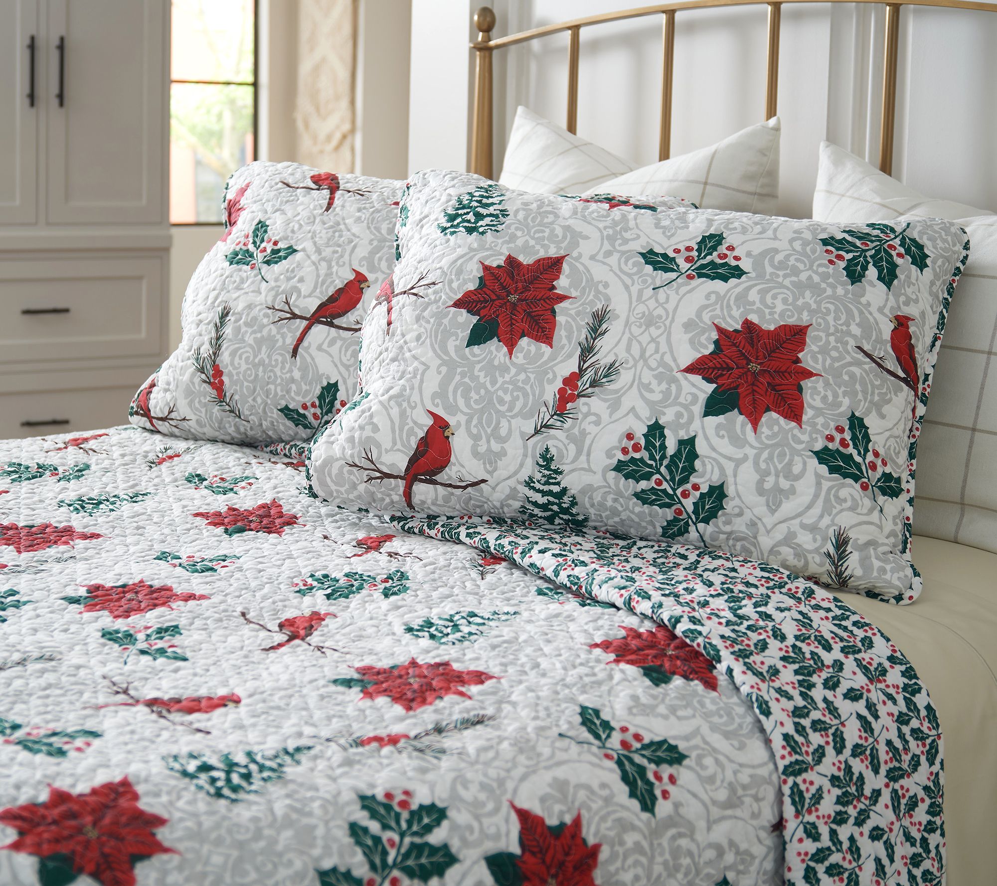 "As Is" Home Reflections Holiday Motif Reversible Quilt Set- King