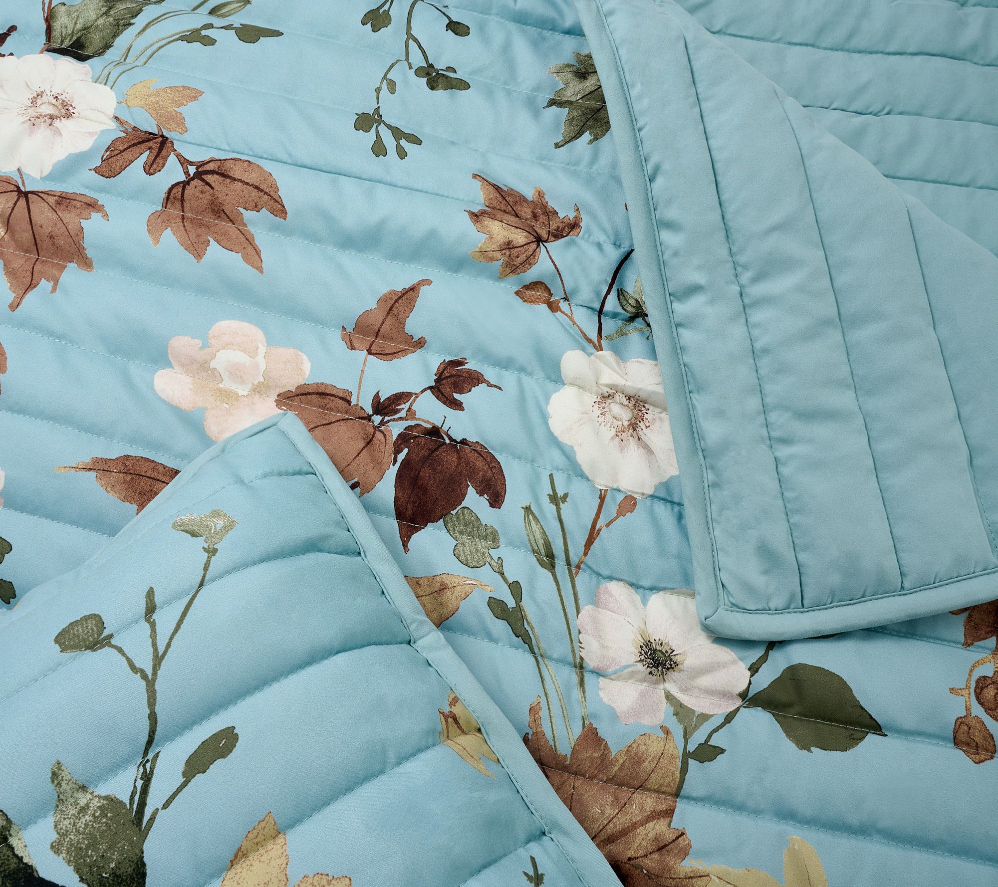 "As Is" Home Reflections King Printed Leaf Quilt with Reverse Solid