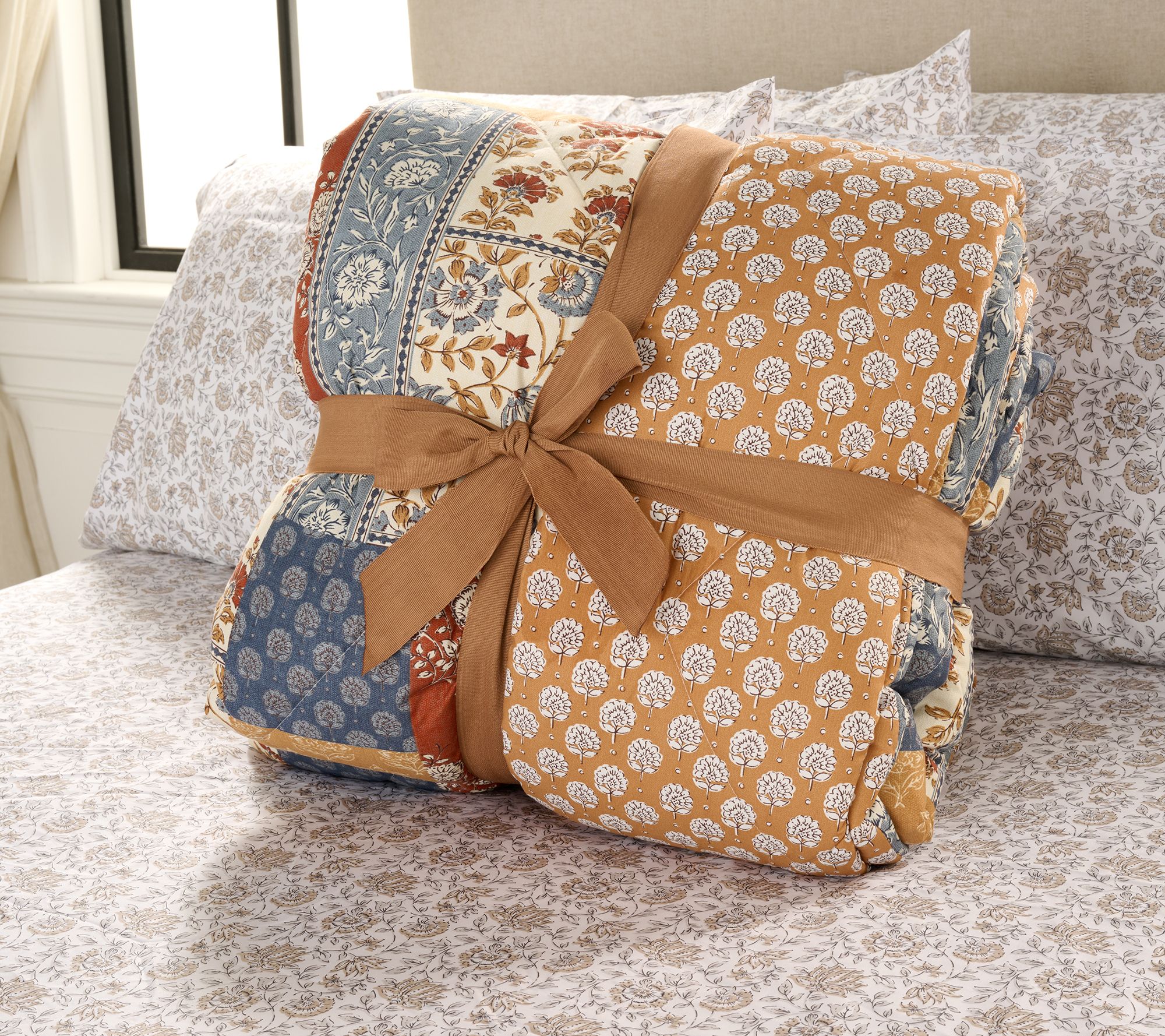 Fall in love -- with your bed again! This charm-brimming comforter and sham set invites you to indulge in snuggly softness and a patchwork of nostalgic patterns for autumn evenings, streaming marathons, and restful weekends. So sweetly piece-printed and edged, it's almost like Grandma made it herself! And with hypo-allergenic fill to boot, it's also a thoughtful pick for guest rooms. From Home Reflections®.