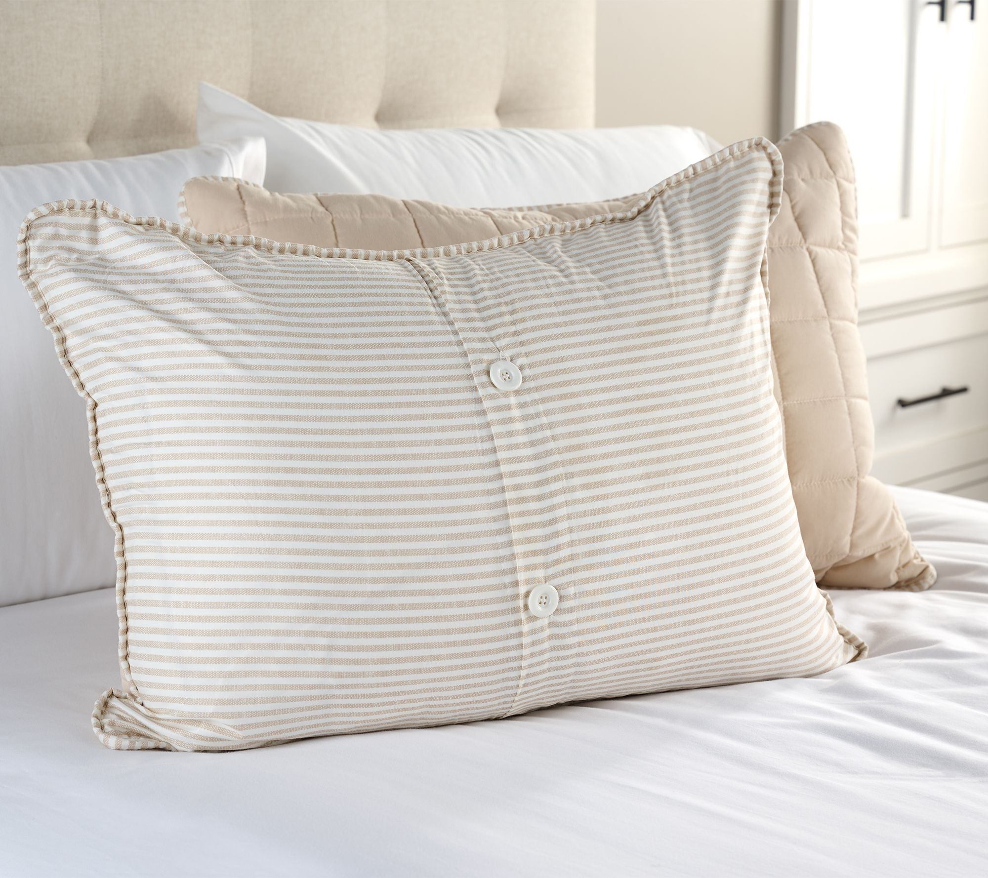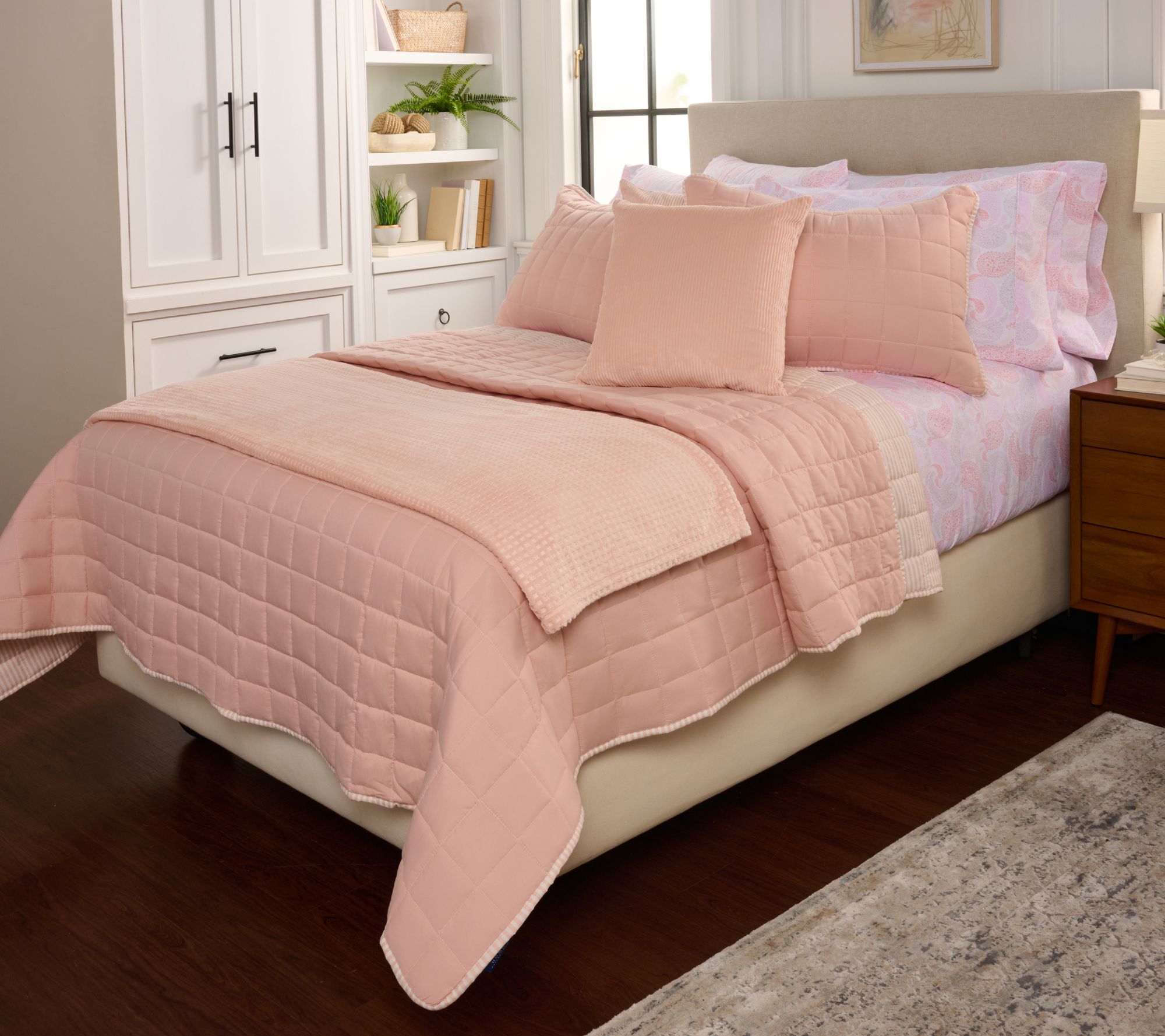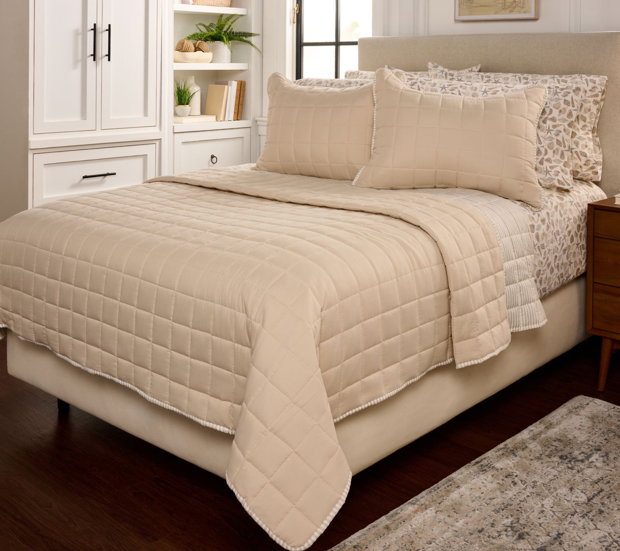 When a restful night, weekend recharge, or bedroom refresh is on your wish list, this reversible quilt set makes transforming any sleep retreat a dream. Rotate between the slightly puffy quilted pattern and the classic striping in tonally matched colors. The soft feel wraps every night in quiet comfort, making it easy to create a haven you and your guests will look forward to. From Home Reflections®.