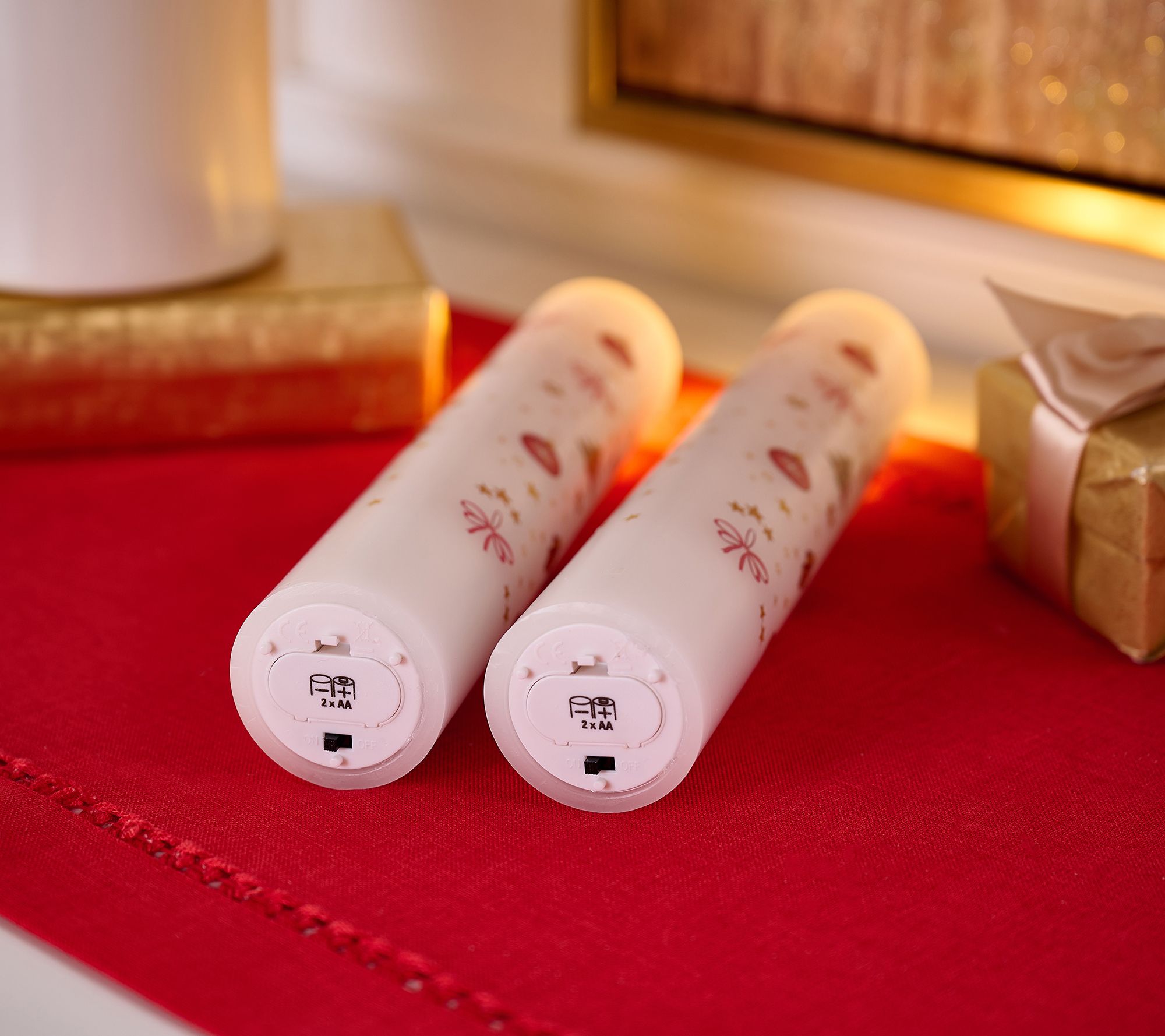 • Includes two flameless advent pillar candles and remote control