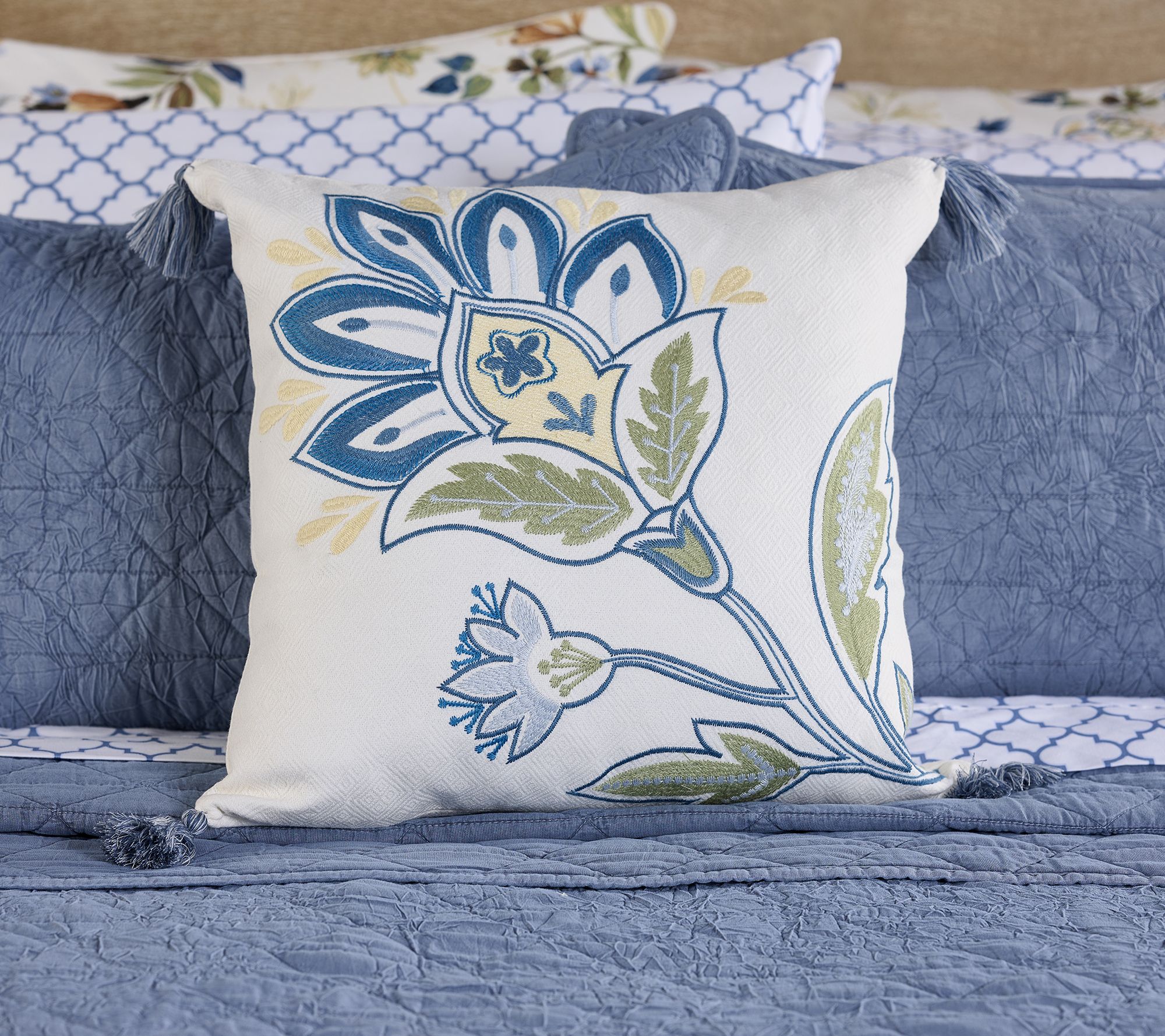 Professionals know. Adding decorative pillow accents to a space makes a house feel like a home. We think these floral-print pillows will do nicely. From Home Reflections®.