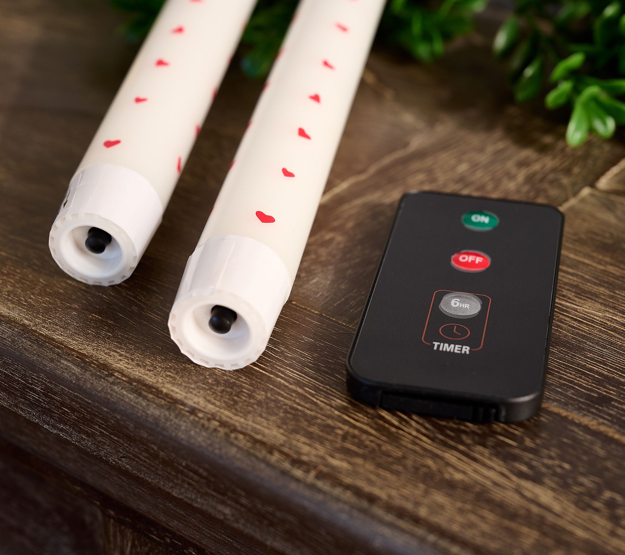 • Includes four flameless mini heart tapers and remote control