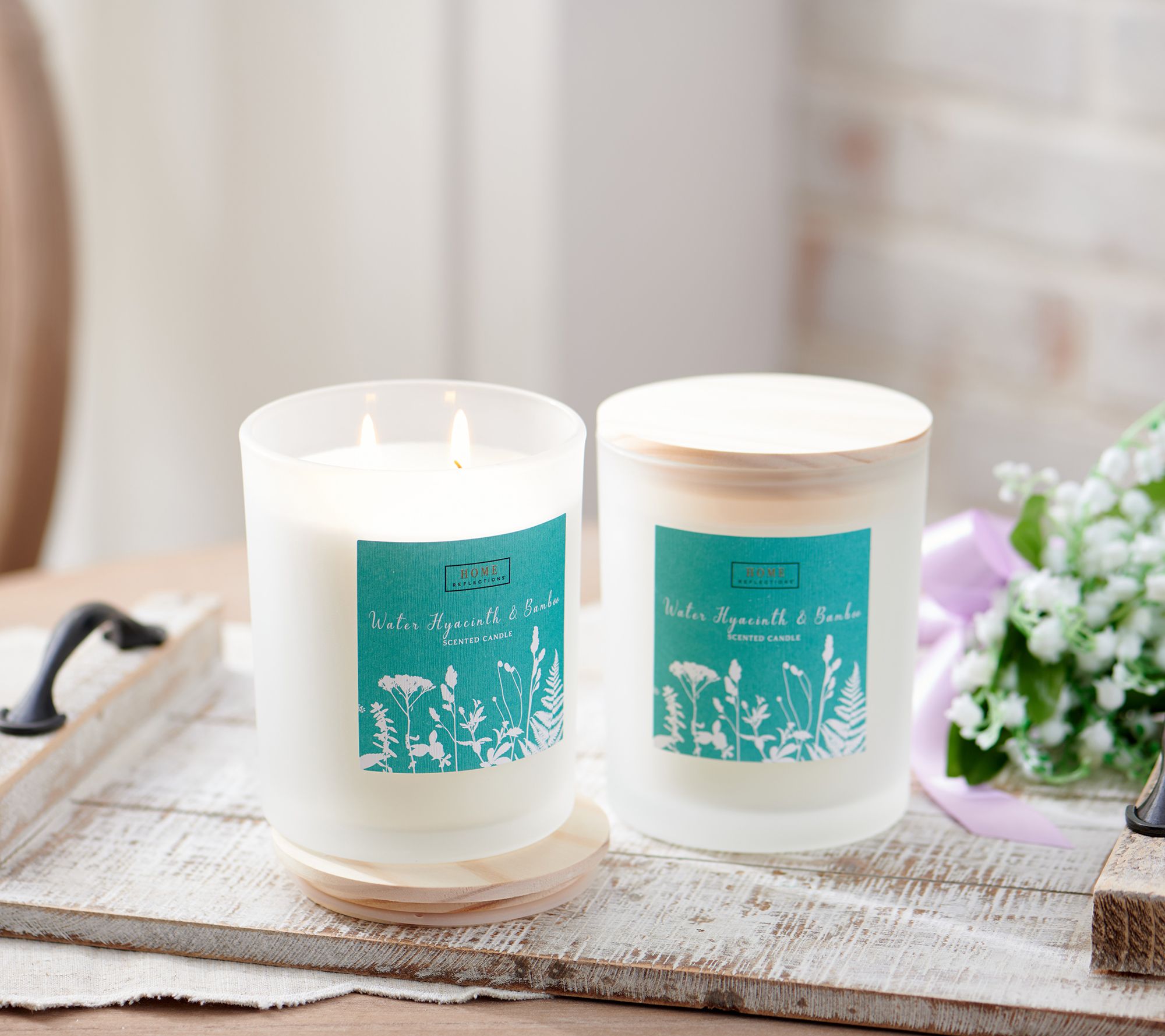 This set of two candles in decorative glass containers arrives with a gift box, so sharing lovely floral scents is a cinch. From Home ReflectionsTM Decor.