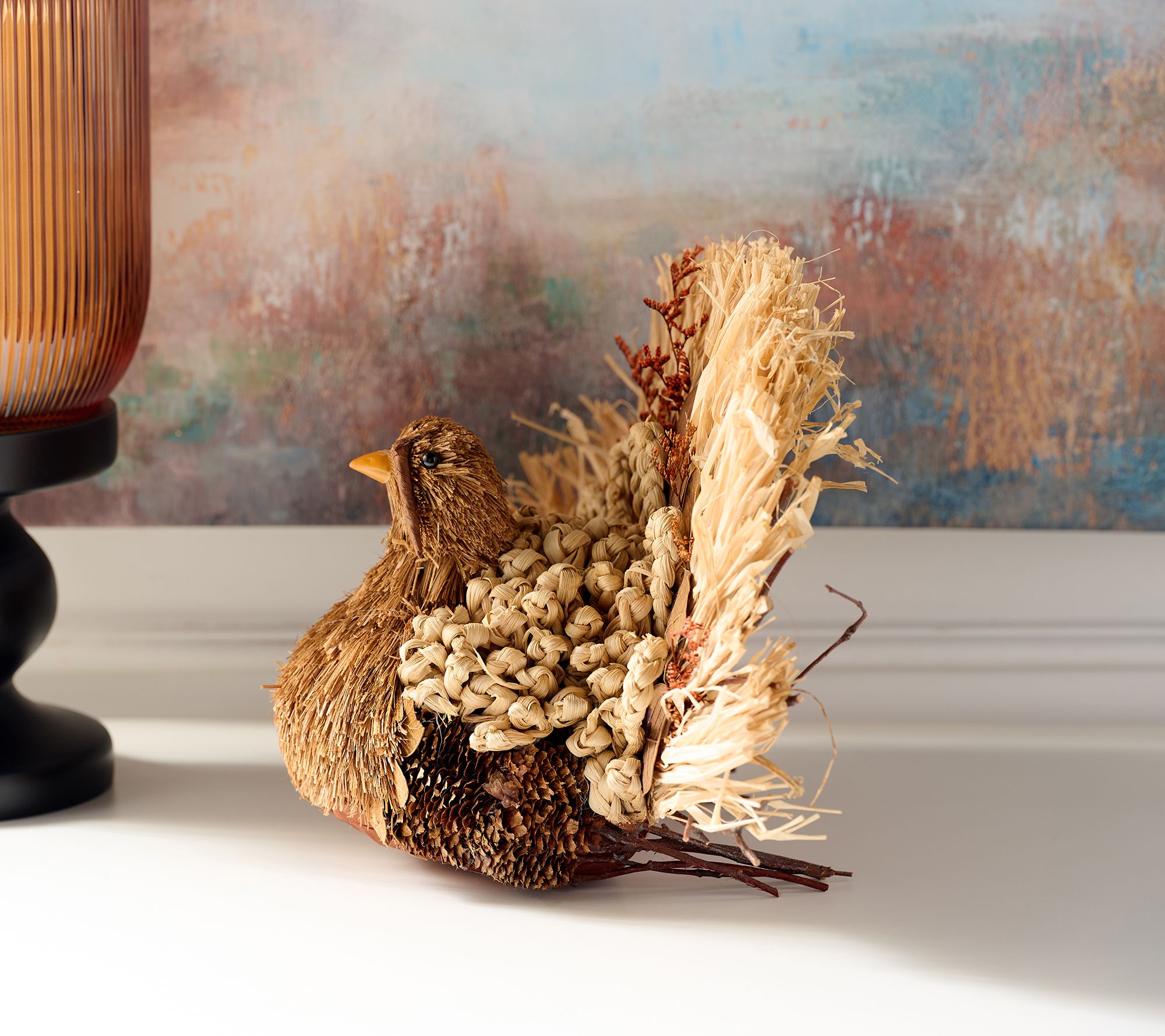 A delight at the center of your table or nestled along a buffet, this sisal turkey brings a festive touch to your seasonal gatherings. Its textured look and warm tones make it a charming choice for holiday decorating, easily creating a welcoming atmosphere for both everyday moments and special feasts. From Home Reflections®.