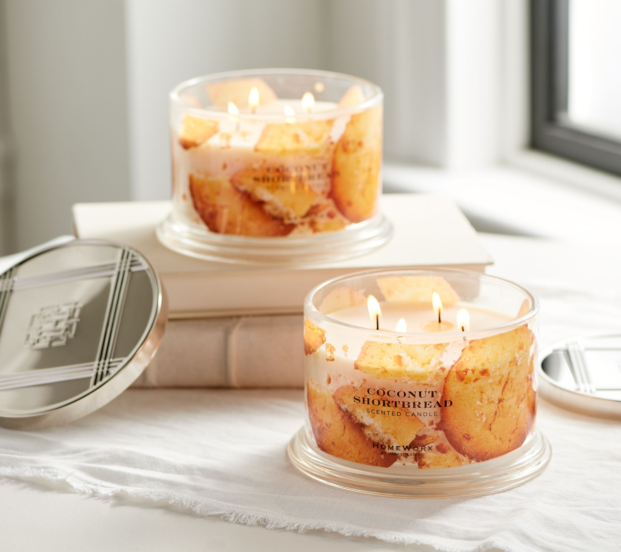 Take in the aromatic scent of baking -- without all the actual baking (and cleanup!) -- with this set of two 18-oz candles in a Coconut Shortbread fragrance. From HomeWorx by Harry Slatkin.