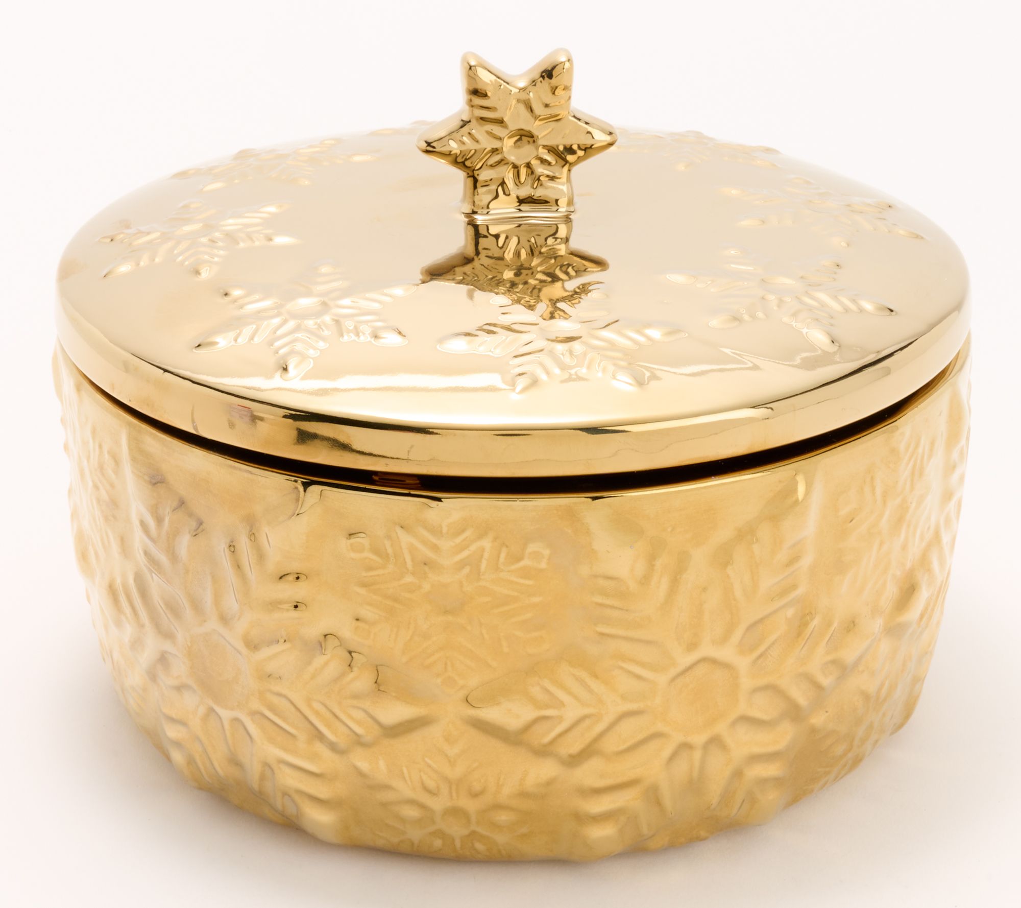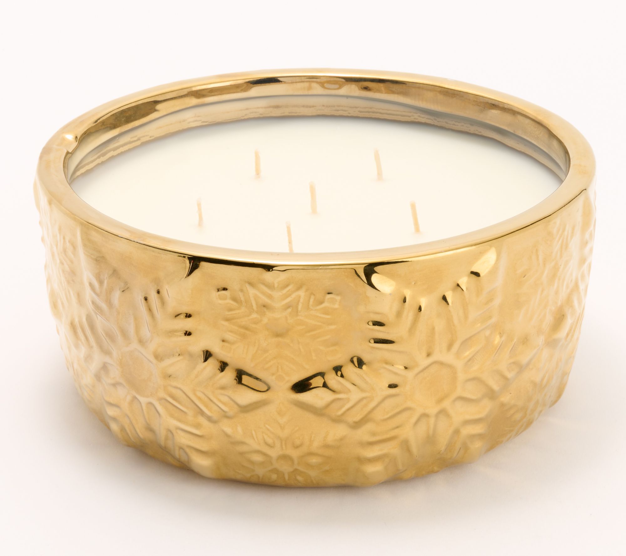 Expecting guests? Create the coziest, most welcoming conversation space by lighting Harry Slatkin's Snow Angels coffee-table candle, an inviting blend of candied cranberry, raspberry cream, and crystallized vanilla (with a hint of sandalwood) in a classy snowflake-embossed vessel. With 50 ounces of richly fragranced wax and six wicks, it'll scent your space from the welcome drinks through the good-bye hugs without interruption. From HomeWorx by Slatkin + Co.